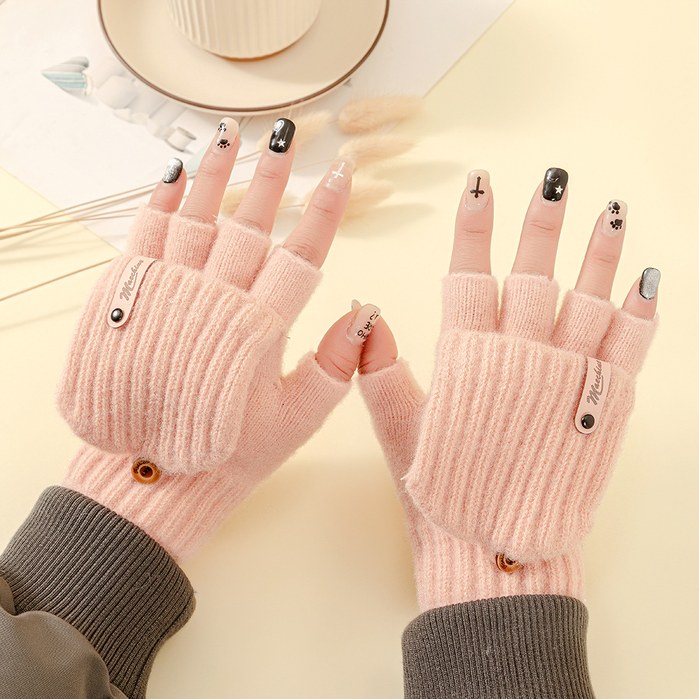 韓国版の半分の指の手袋の女性の秋冬の保温のメリヤスの5本の指の学生は字の毛糸の露の指を書いて厚い百合の冬を指します。