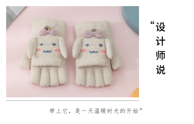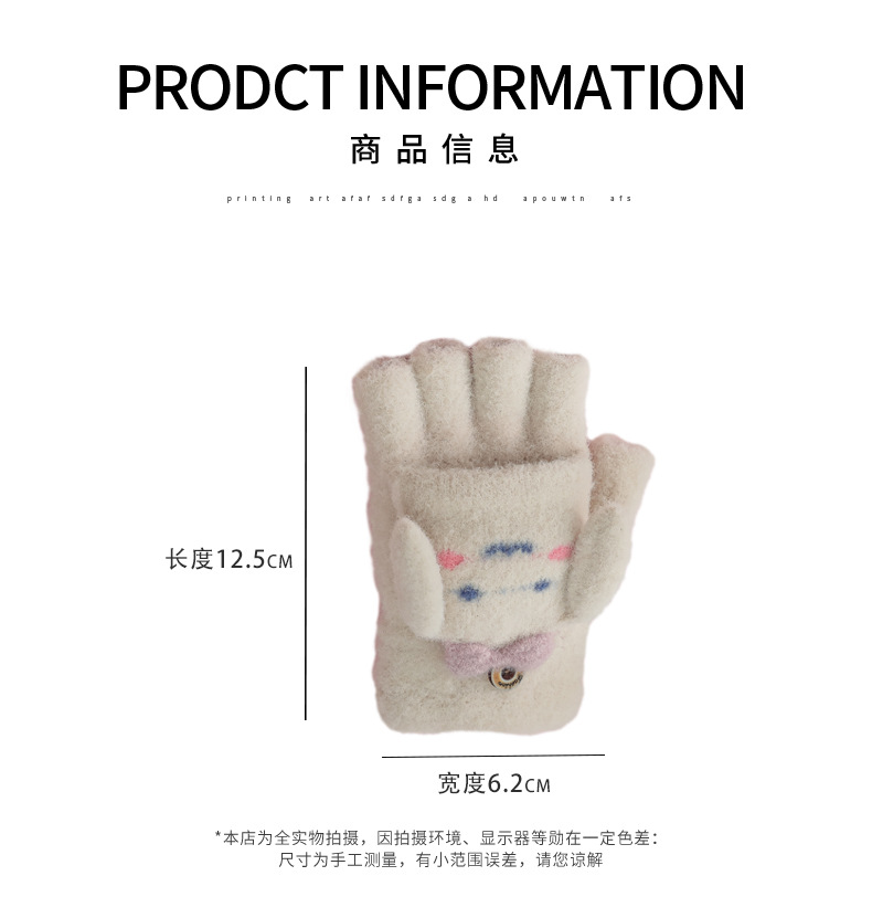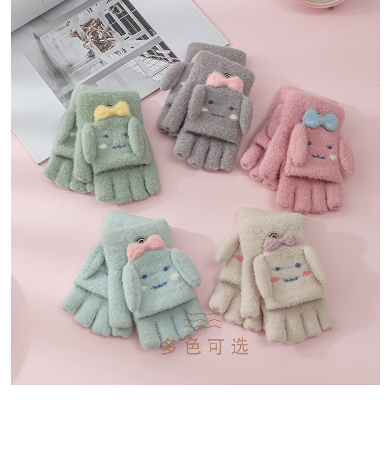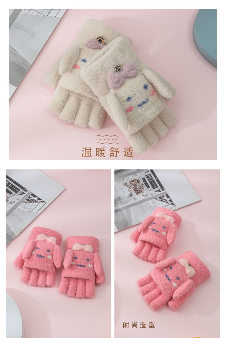 宝宝翻盖手套五指男童女童秋冬季儿童保暖可爱卡通1-3岁2分指半指