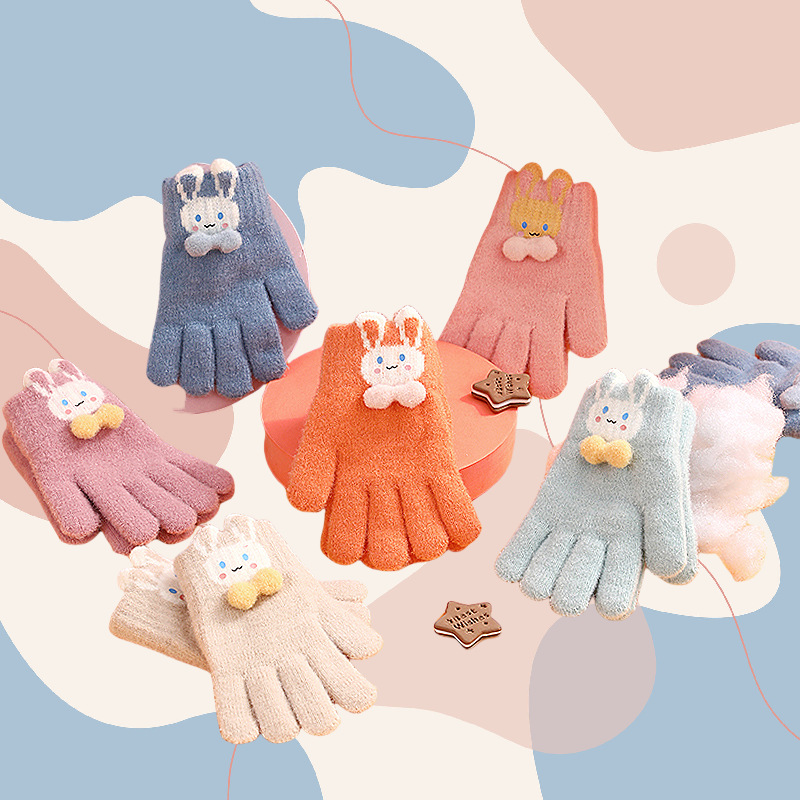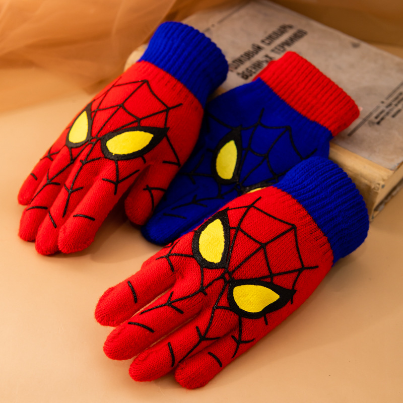 子供の自転車に乗る手袋冬の保温女の子は学生のかわいいアニメの男の子のニットの毛糸の凍結防止の手袋を指します。