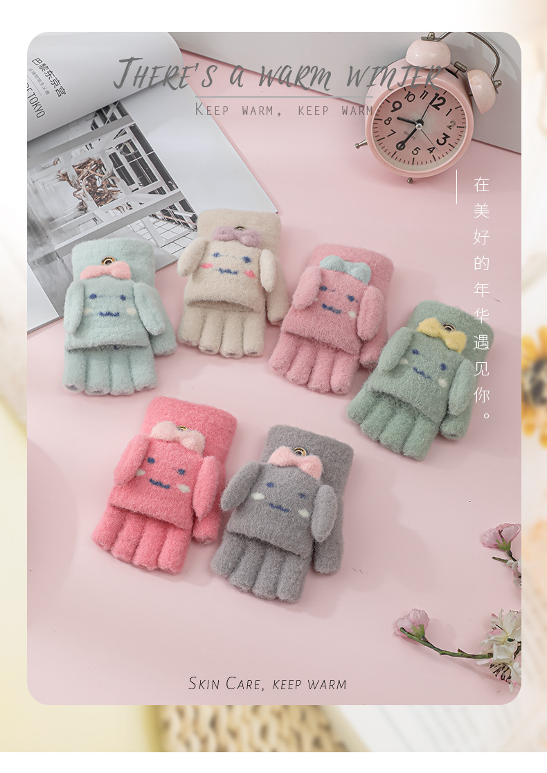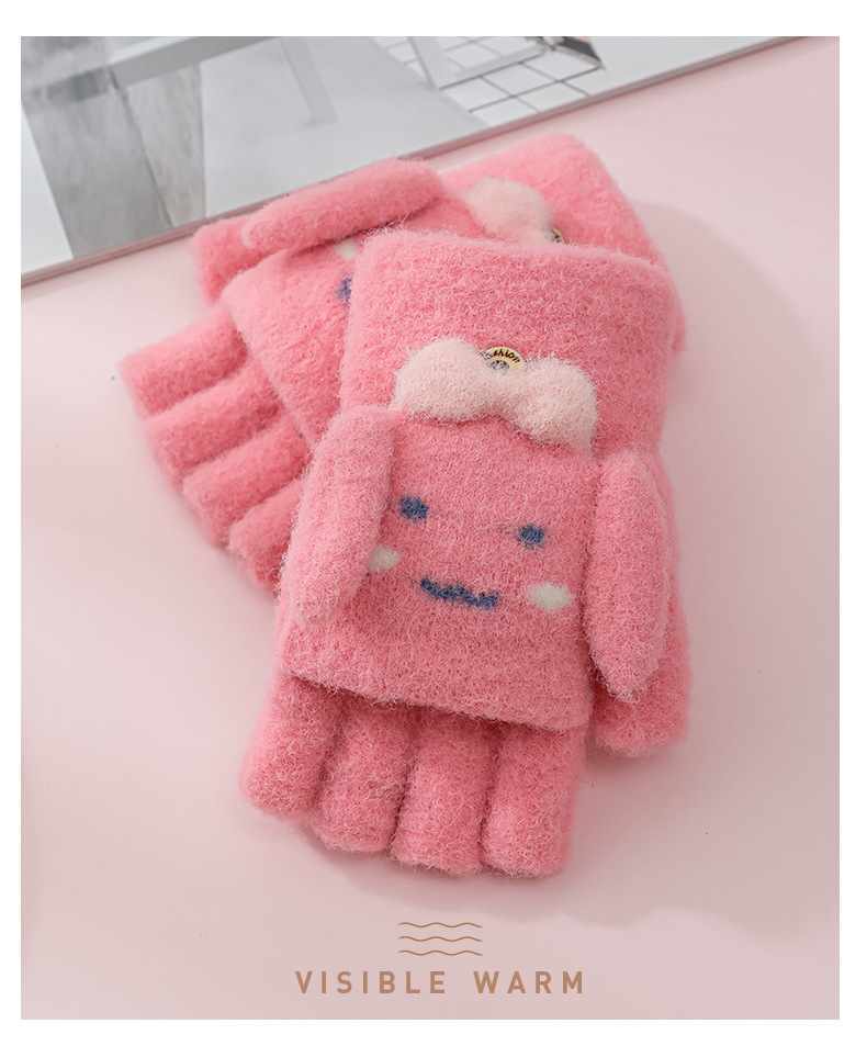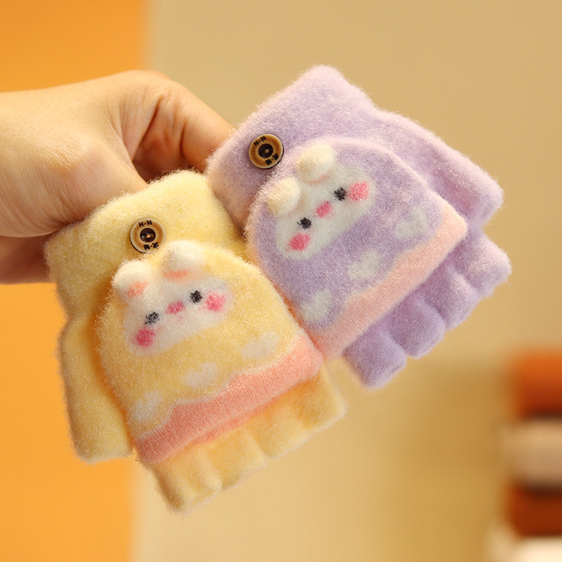 子供用手袋男の子の女の子の漫画は字を書いて厚いベルベットの半分の指を覆って冬の手袋をひっくり返して自転車に乗る子供は保温します。