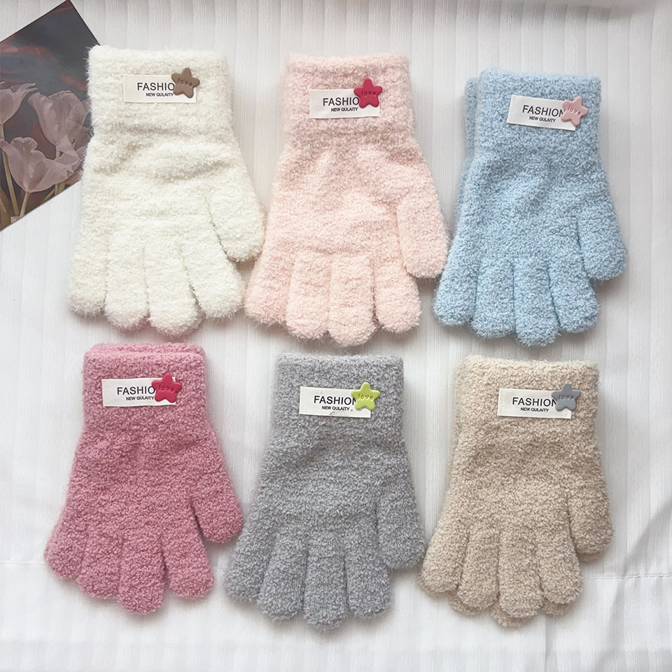韩版ins风中大童针织保暖手套秋冬季防寒可爱男女孩骑车写字五指