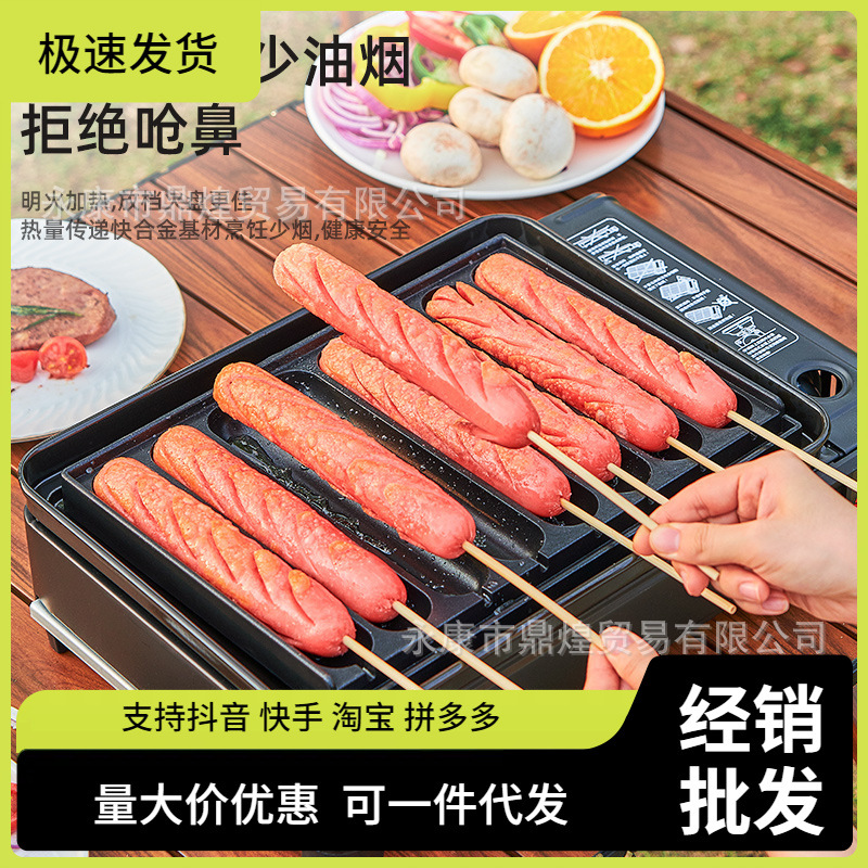 アウトドアキャンプポータブルソーセージマシン家庭用正方形カセットストーブベーキングパン商業屋台澱粉ソーセージバーベキュープレート型