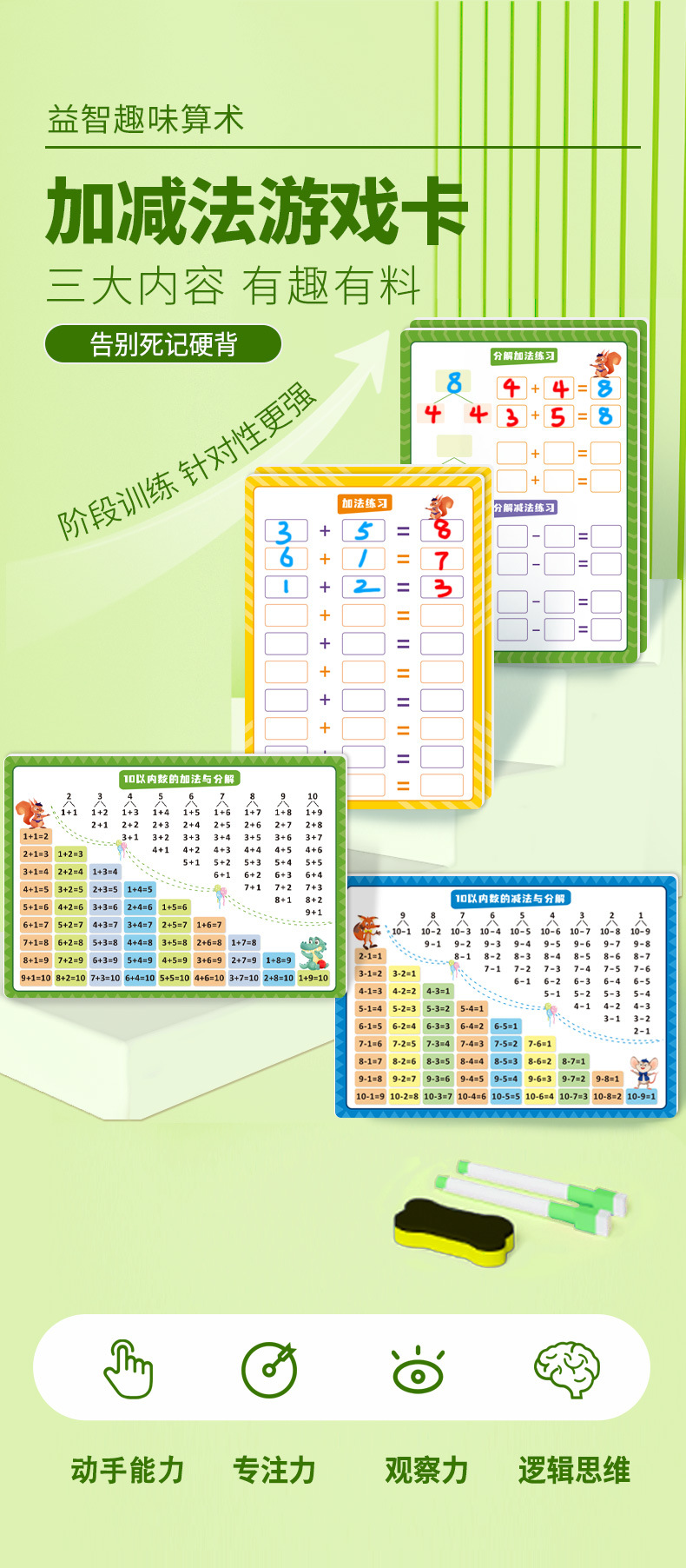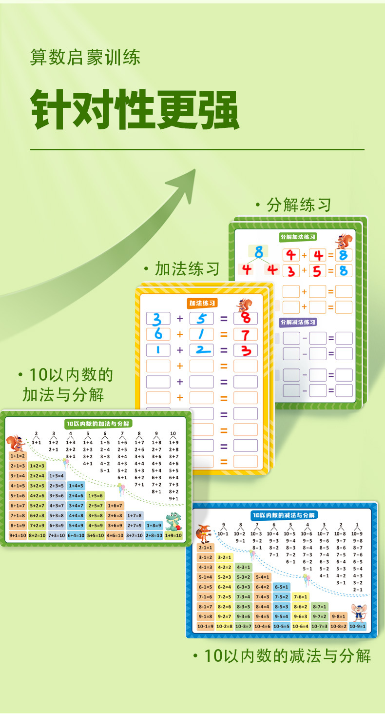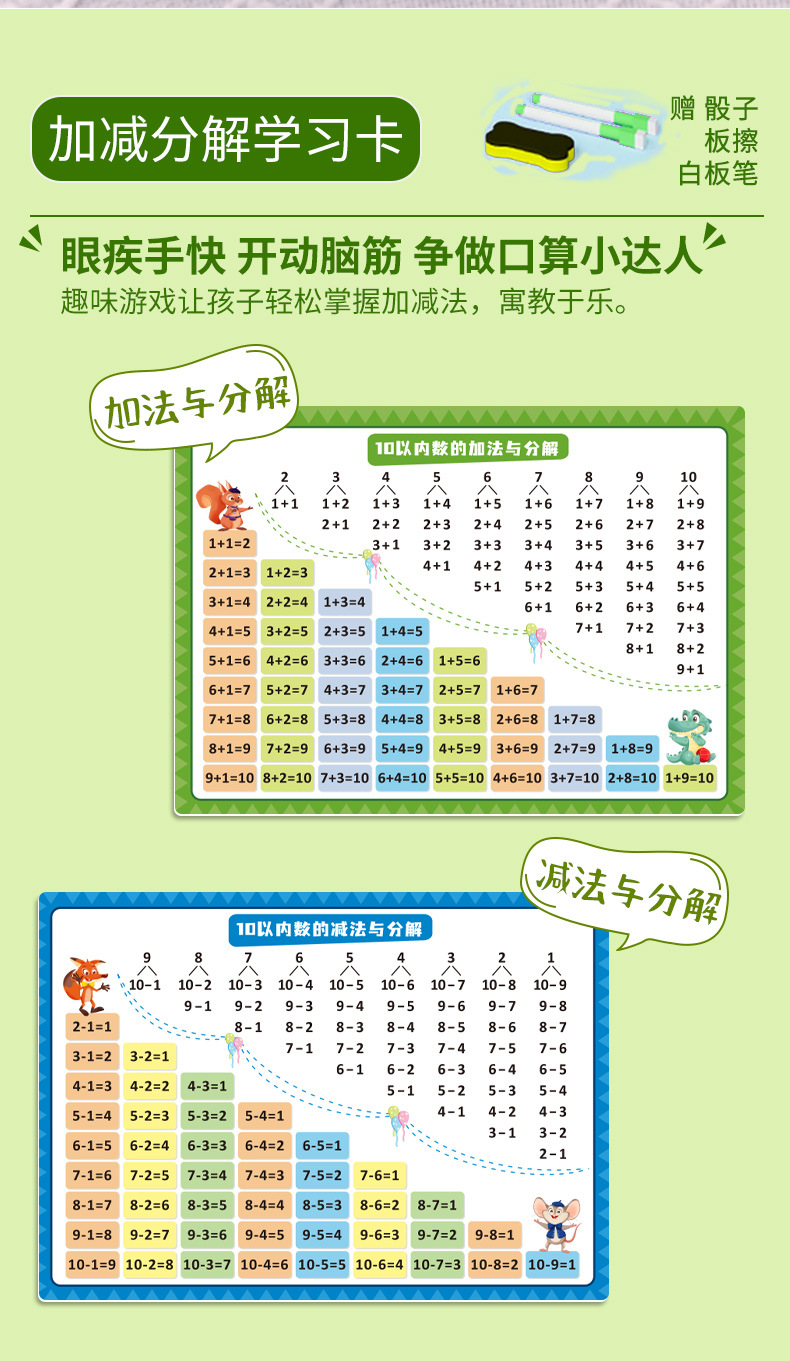 算数教具神器幼稚園一年生10年以内分解加減算口訣表数字啓蒙玩具カード