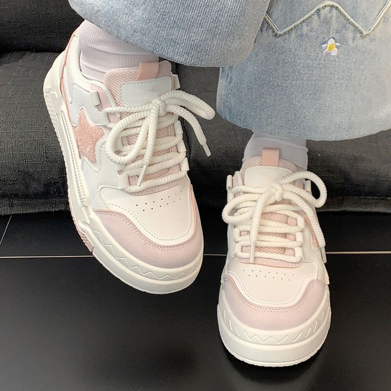 白い靴の春の靴2024の新型の女性の靴の韓国版の春の板の靴の学生のレジャーの春と秋の平のひもの靴