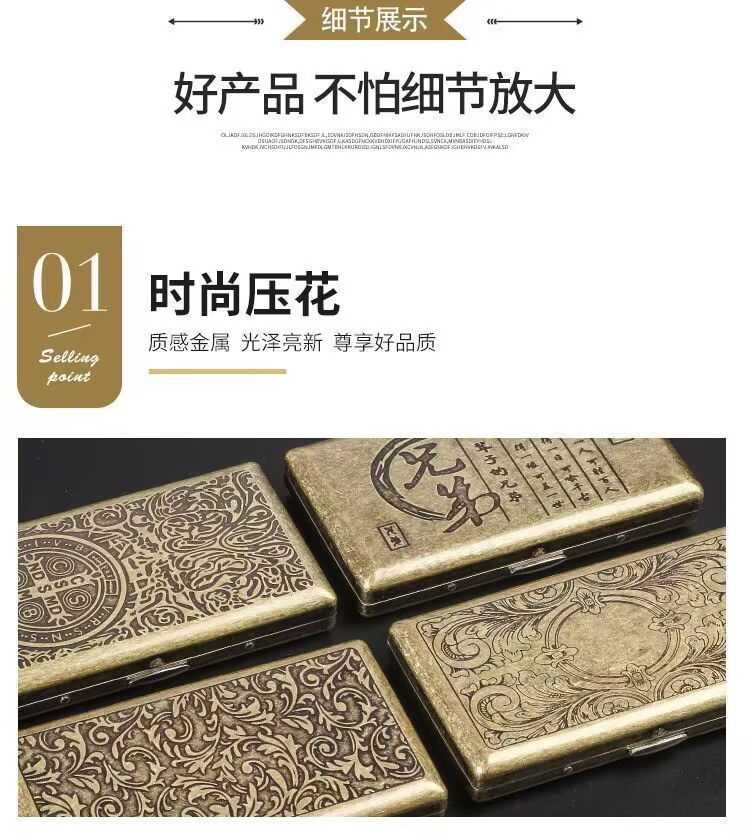 金属シガレットケース20本入り手巻き8.0粗本携帯カバー個性両面エンボス防湿香yanケース