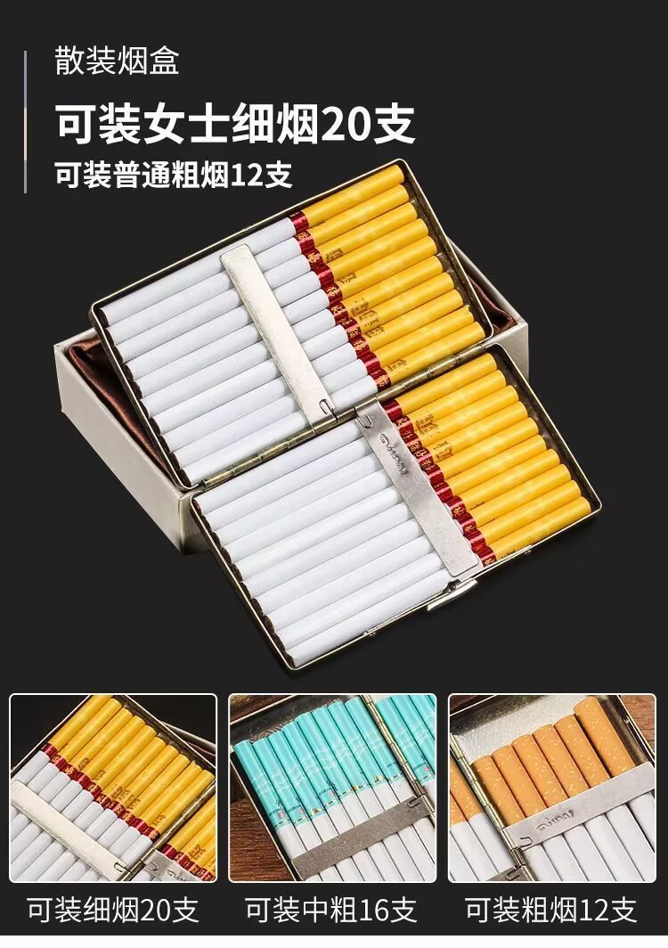 メーカー直販20本入り皮質鉄製タバコケース超薄型携帯防圧防湿防汗8.0mmサイズ卸売り