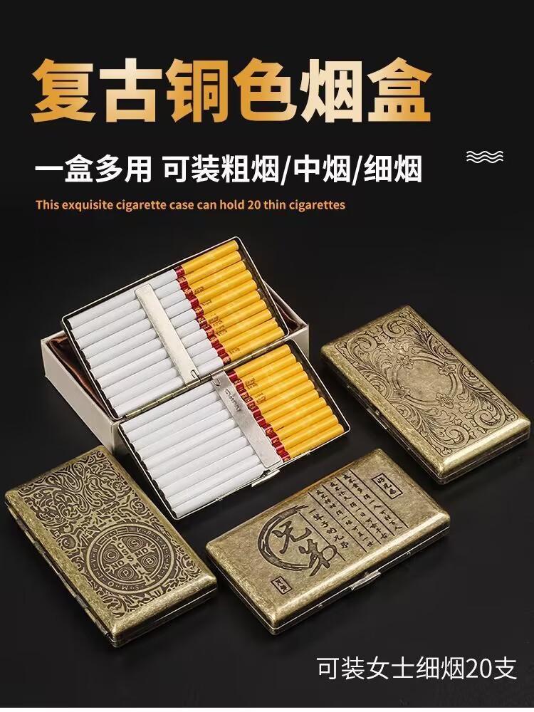 新品細支20本入レディースシガレットケースレトロ高密度冷延板銅メッキマルチパターン選択シガレットケース
