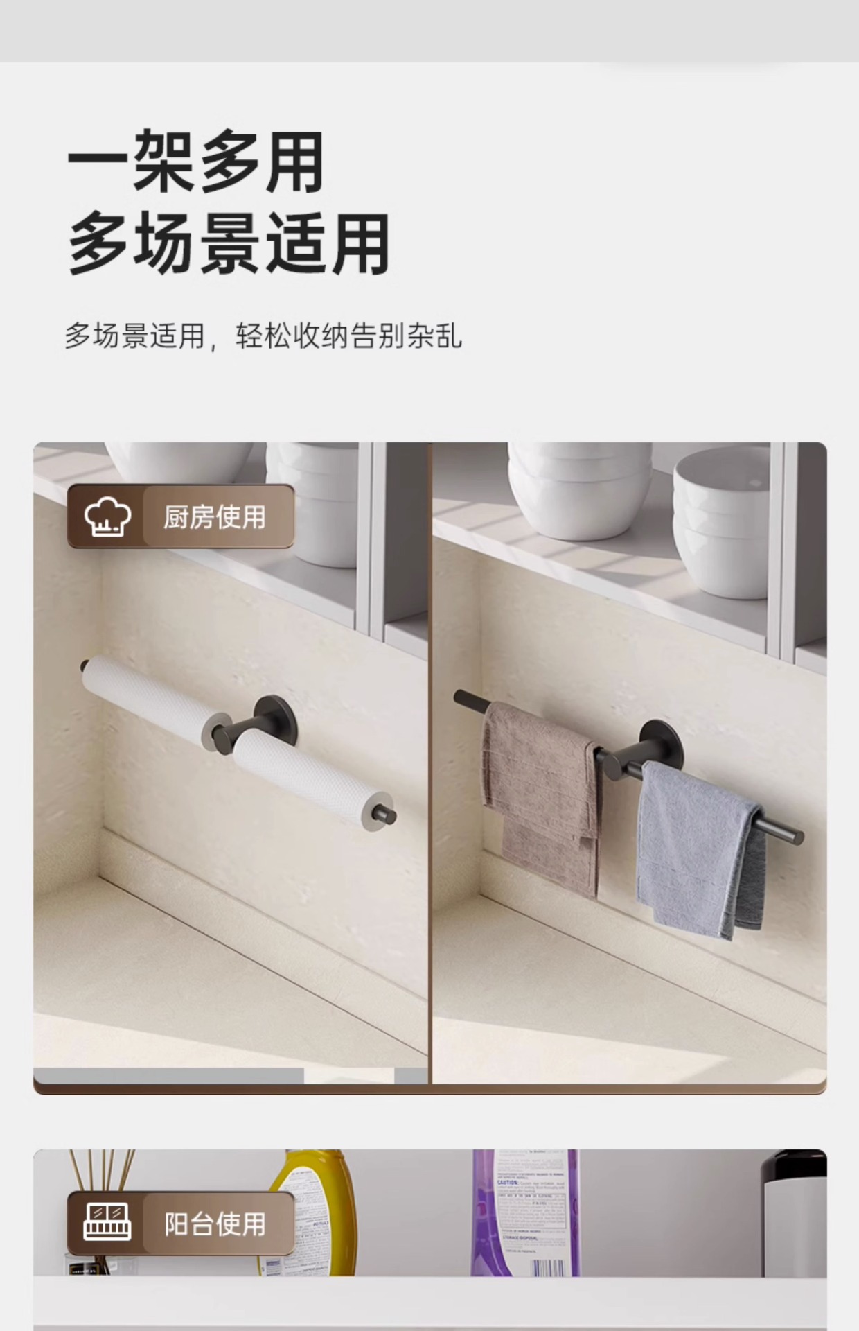 銃灰タオルラックトイレ穴なし物置ラック浴室壁掛けキッチンシングルバータオルバーハンガー収納バー
