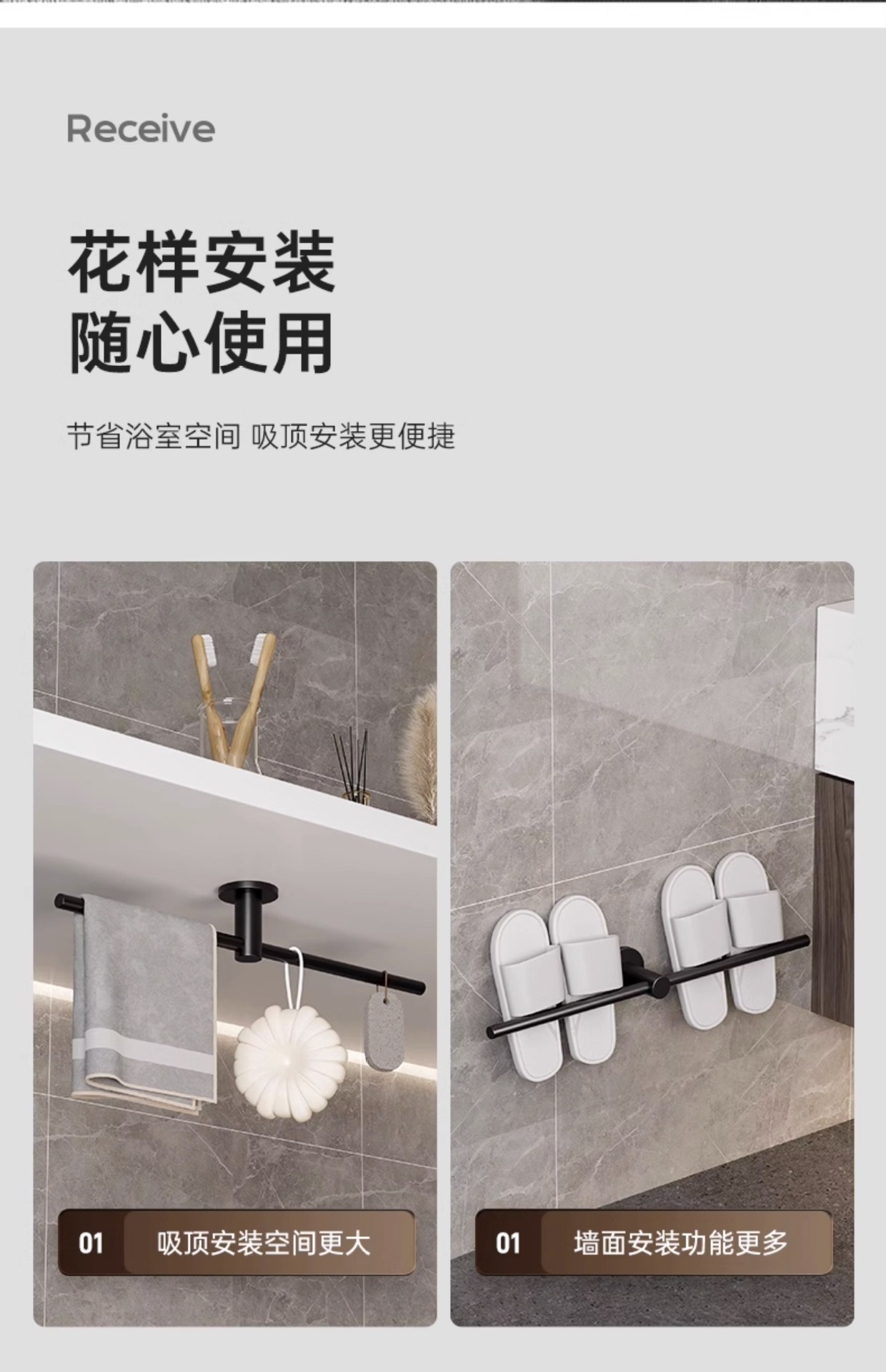 一字毛巾杆不锈钢毛巾架浴室极简创意单杆浴巾架卫生间轻奢挂架