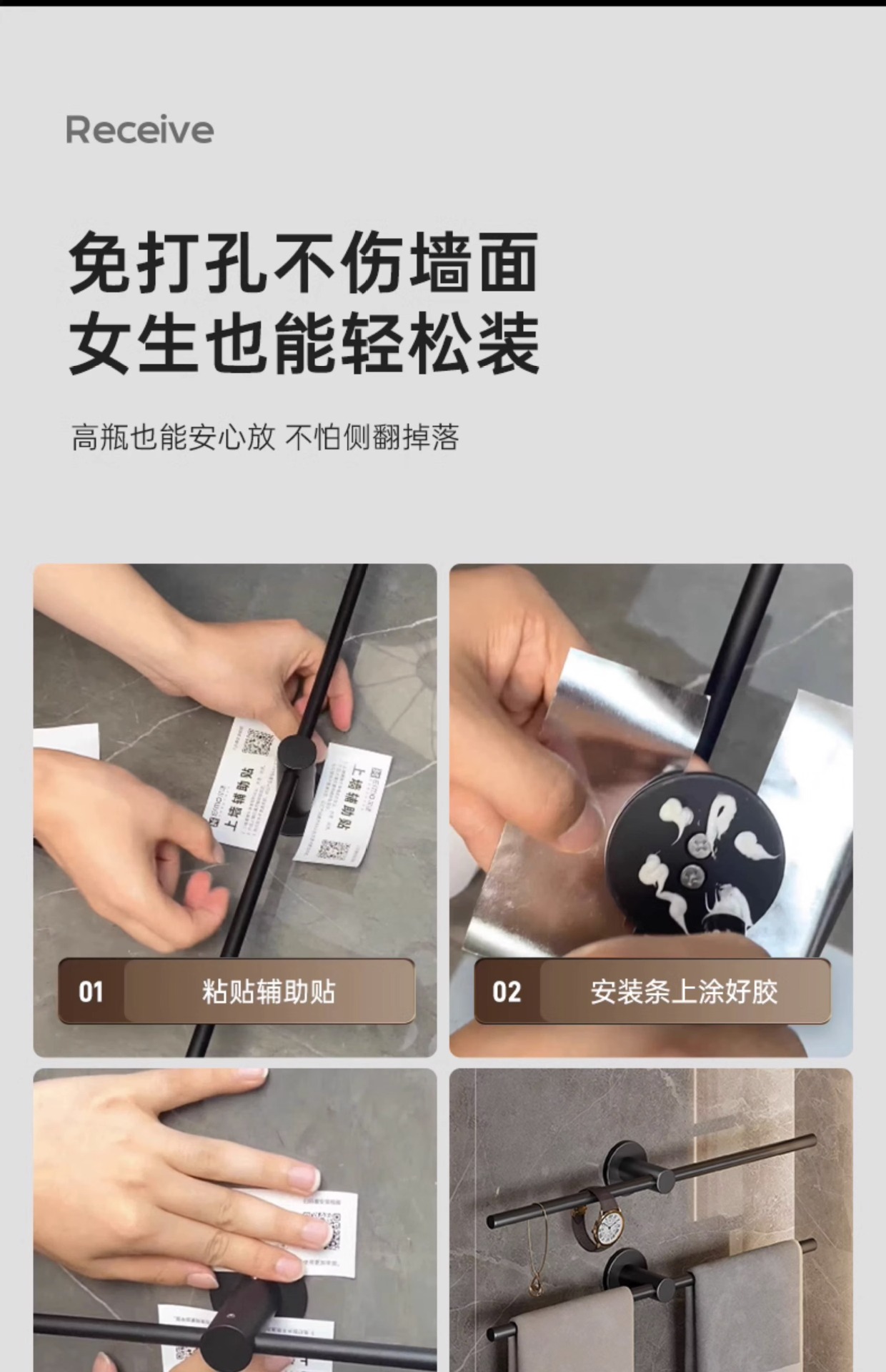タオル掛けの浴室は穴を開けないでアイデアを出します。タオル掛けは軽くて豪華です。