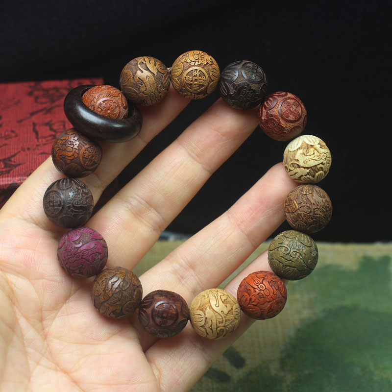 マルチビーズブレスレット彫刻十二支ランニングリングローズウッドマホガニーブレスレット男性と女性木製仏教ビーズ手持ち