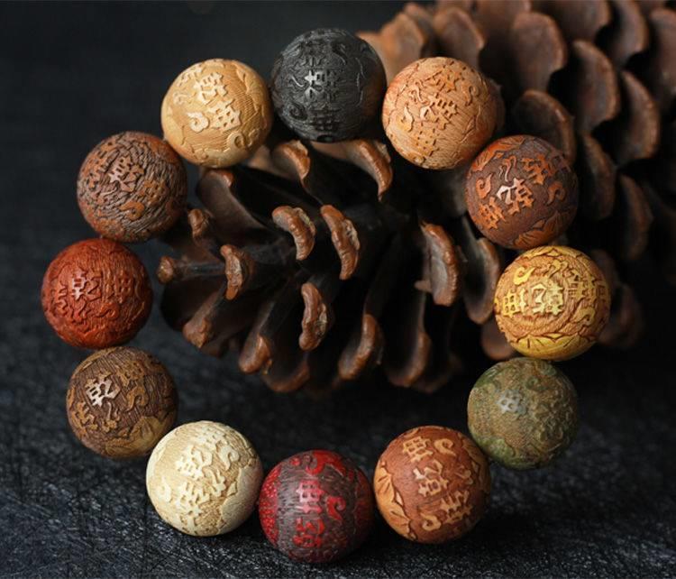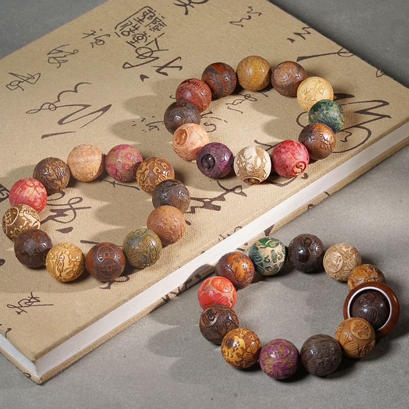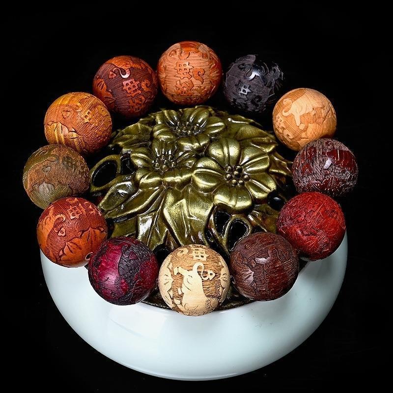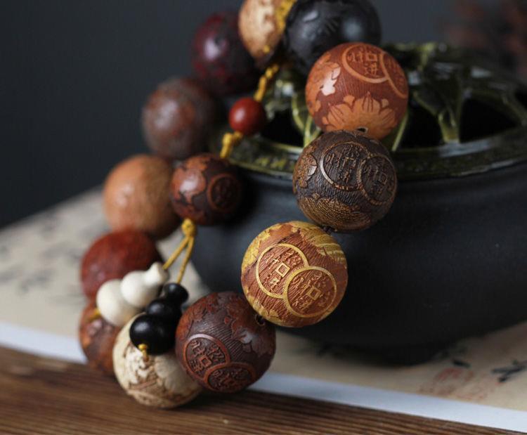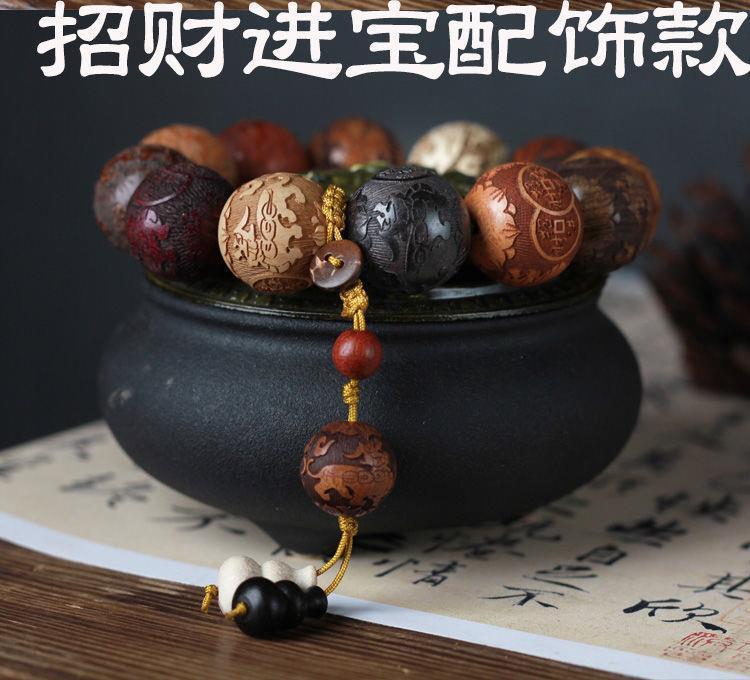 多宝珠檀木彫刻ブレスレット民族風ファッション流行仏珠手串男女史文遊び財招首飾品