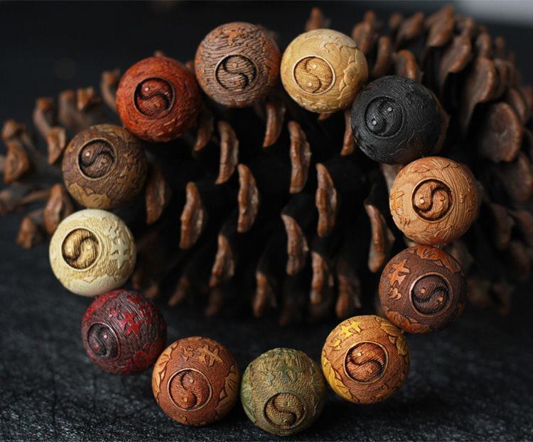 檀木五行多宝珠彫刻珠手串ブレスレット男女カップルスタイル中国風数珠装飾アクセサリー文遊び