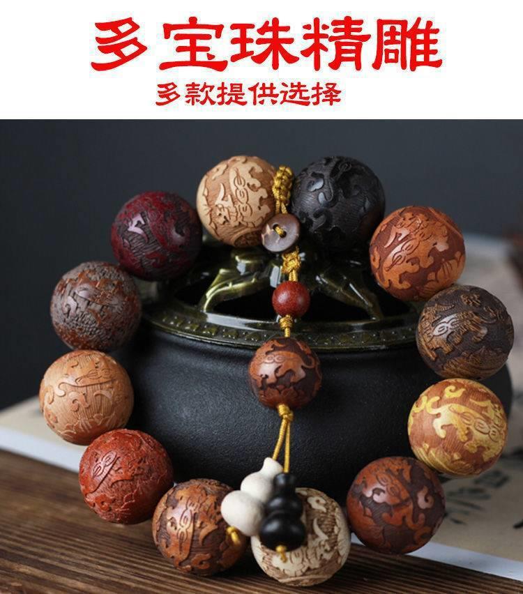 多宝珠仏珠手飾り、精巧な彫刻が施された宝物文玩手飾り、大葉念珠手飾り