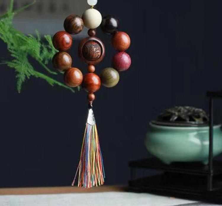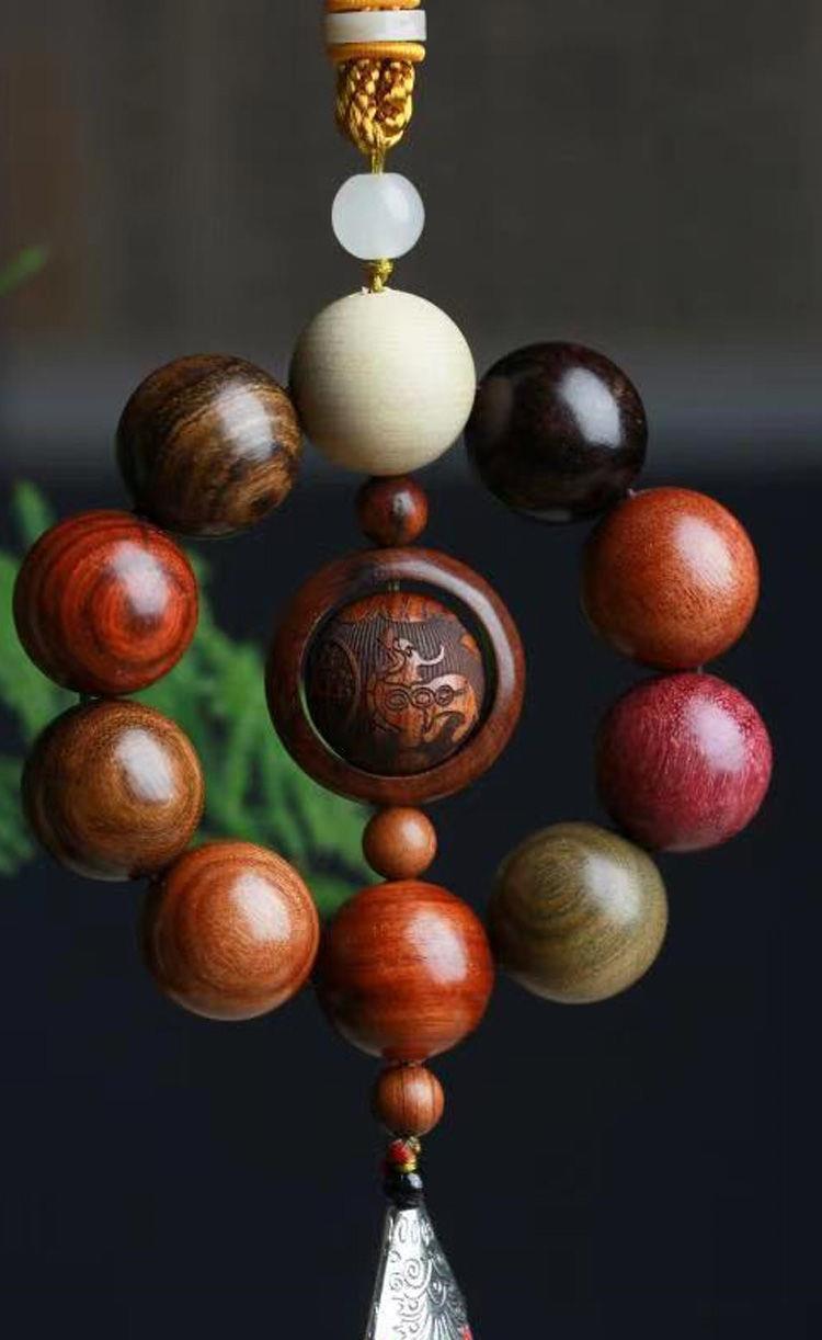 原木多宝珠手串精工彫刻牛転乾坤黒檀花梨紫檀男女カップルチェーンs 8