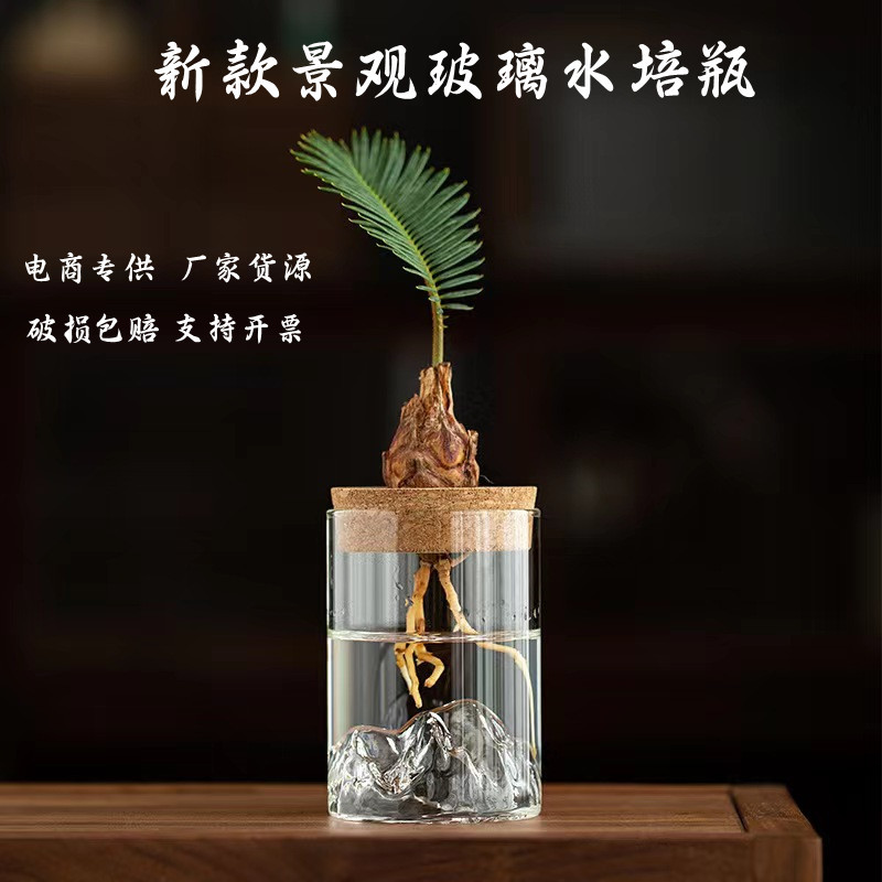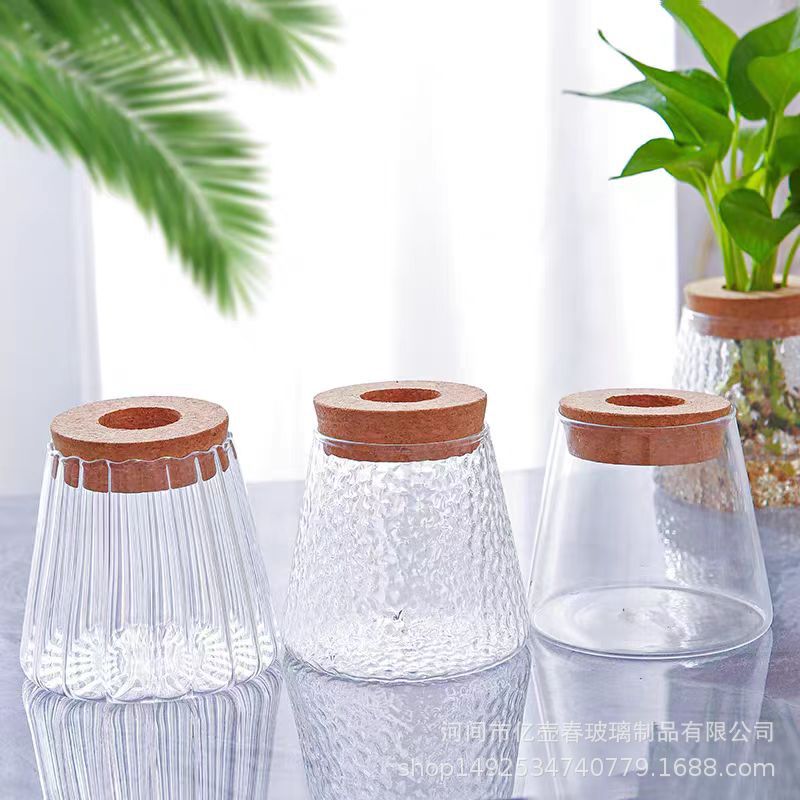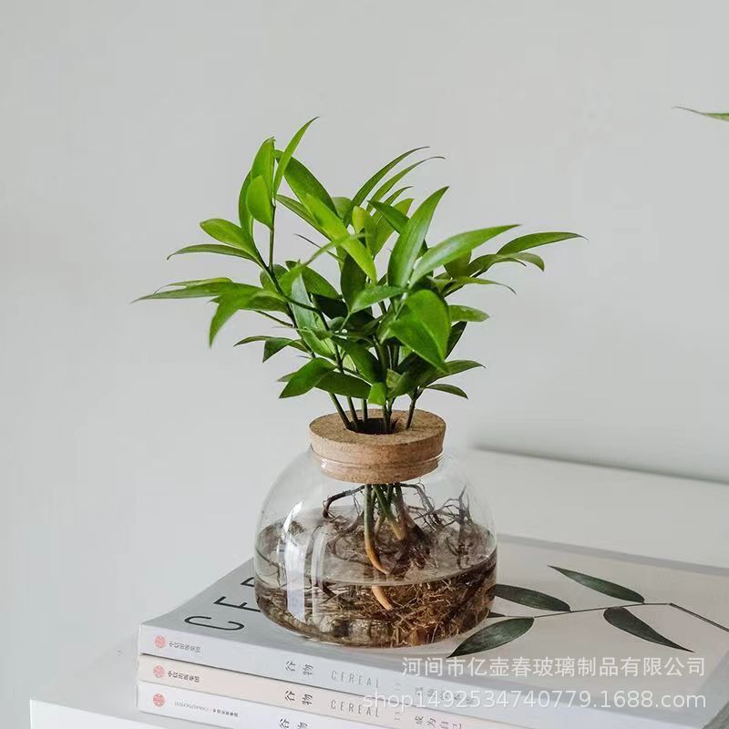 クロスボーダー包装創意怠け者ガラス花瓶透明生け花置物木栓水培植物瓶緑羅生態瓶