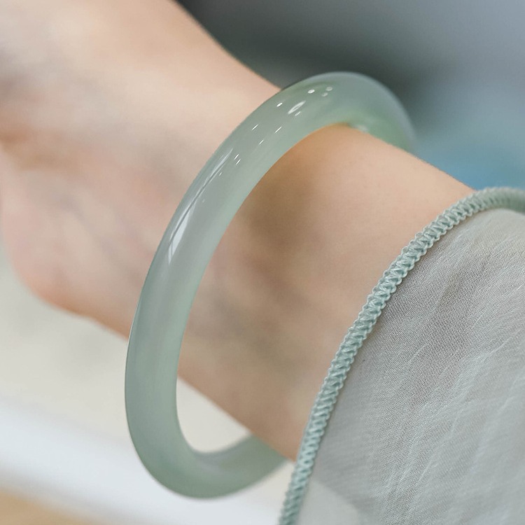 8mm青風瑪瑙玉髄ブレスレット氷透浅緑色少女ブレスレット美人条細い円