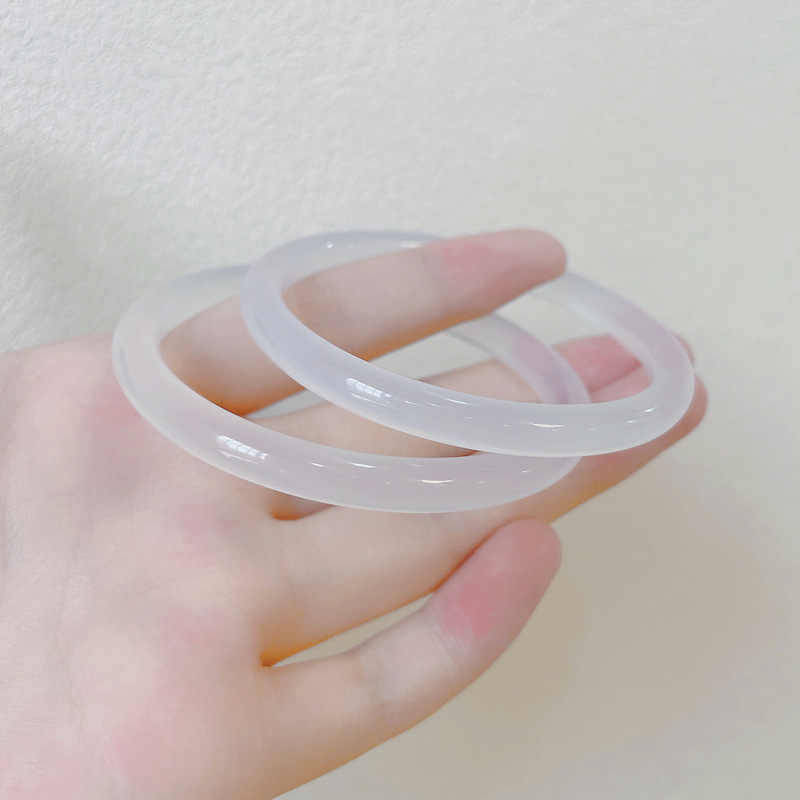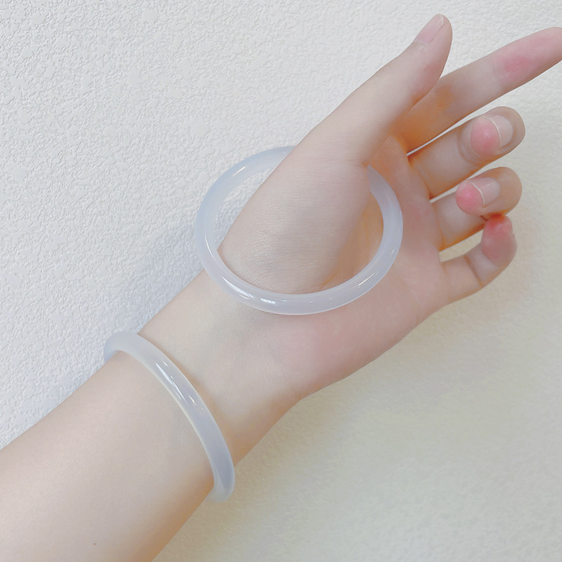白い瑪瑙のブレスレットの女性の白い月の光の美人の腕輪の細い丸いレイシの冷凍の白い玉髄は腕輪になります。