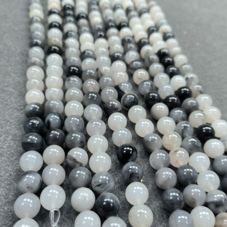 天然金糸玉水墨青花散珠円珠白黒珠パンダ珠10と14mm半製品量が大きい