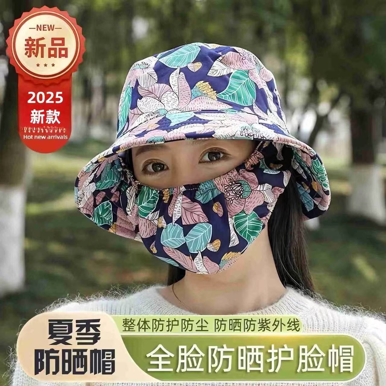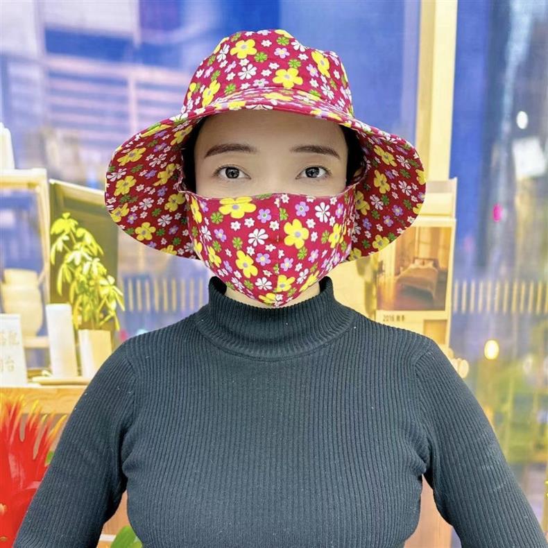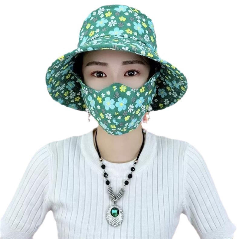 砕花一体マスク漁師帽女性夏日焼け止め日よけ帽子アウトドアスポーツ紫外線防止茶摘み帽子
