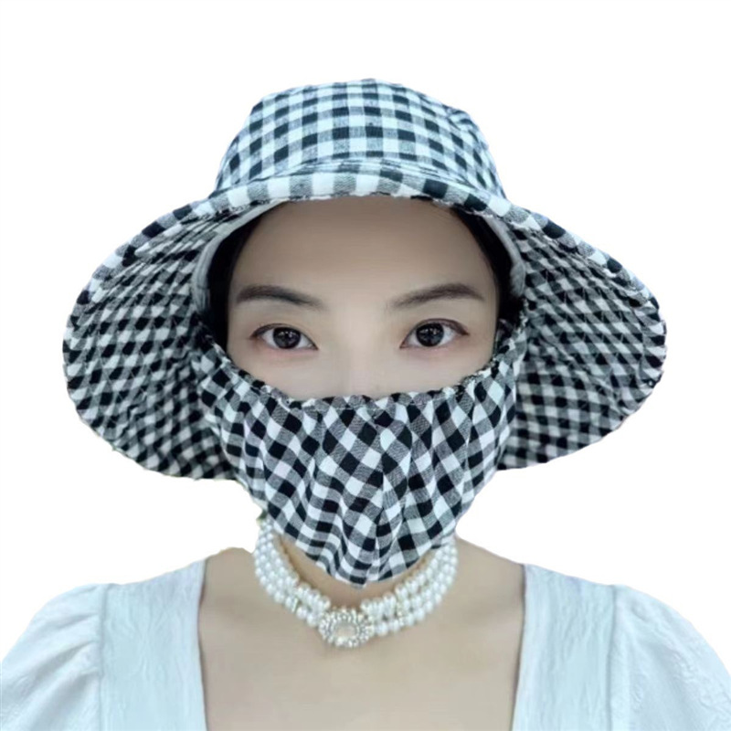 ベトナム日焼け止めマスク帽子夏の女性日焼け止め帽子顔を隠す紫外線防止太陽帽子採茶帽子