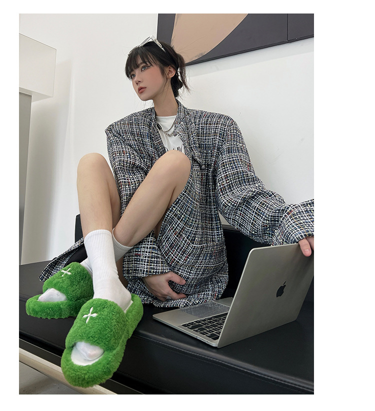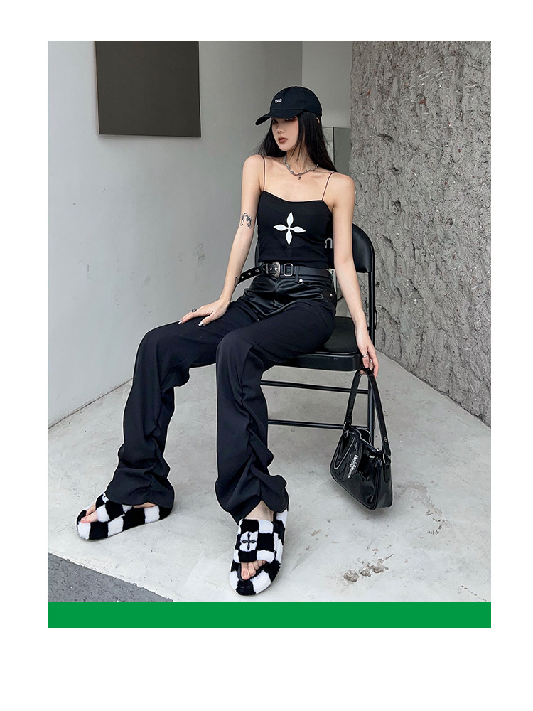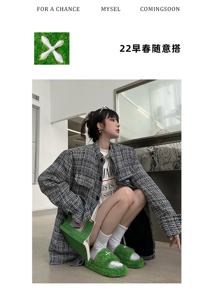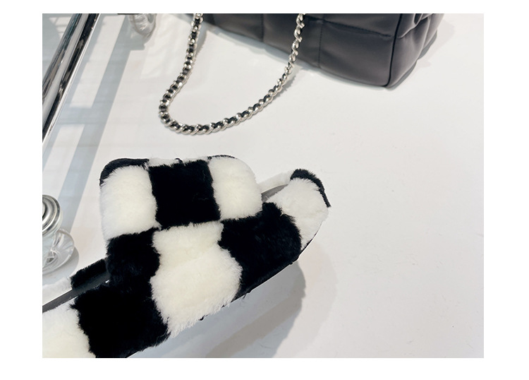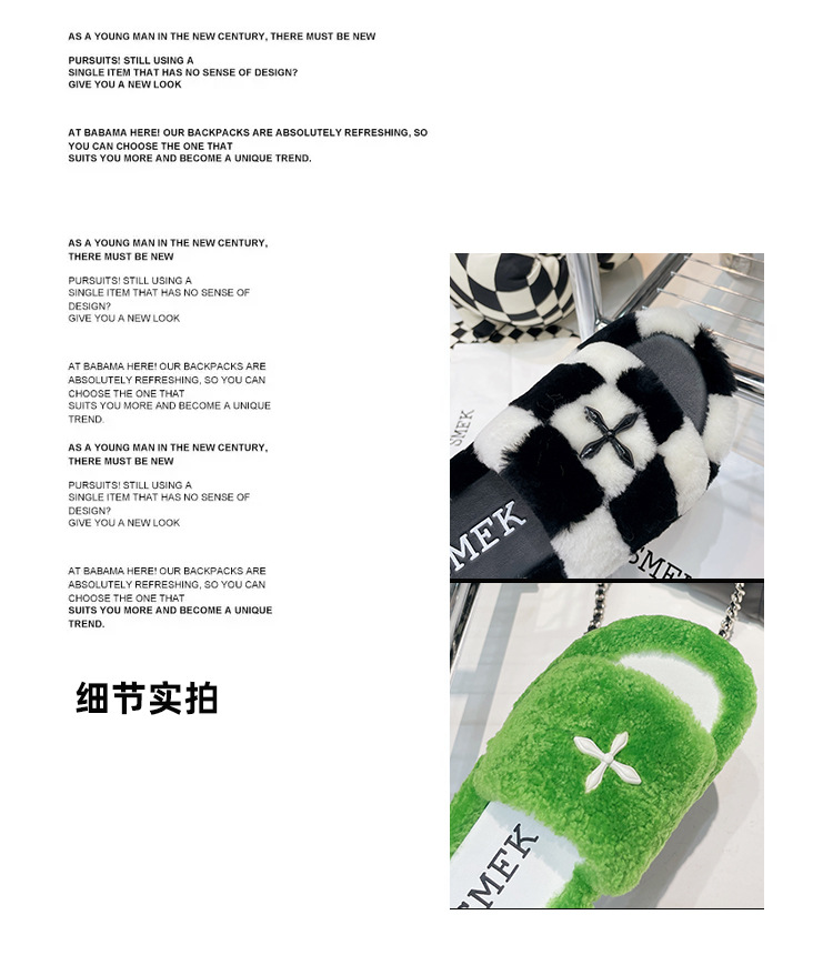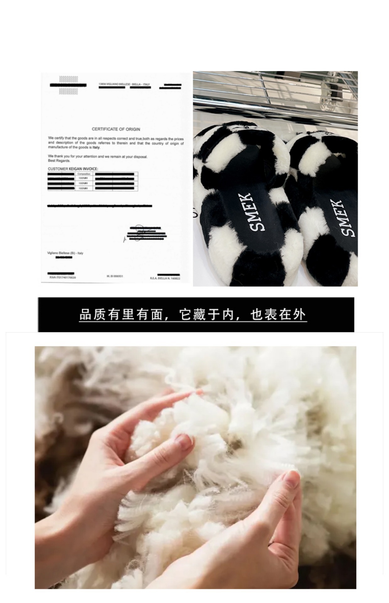 吴宣仪同款SMFK黑色毛毛拖鞋外穿十字花羊羔毛一字拖厚底毛毛拖鞋