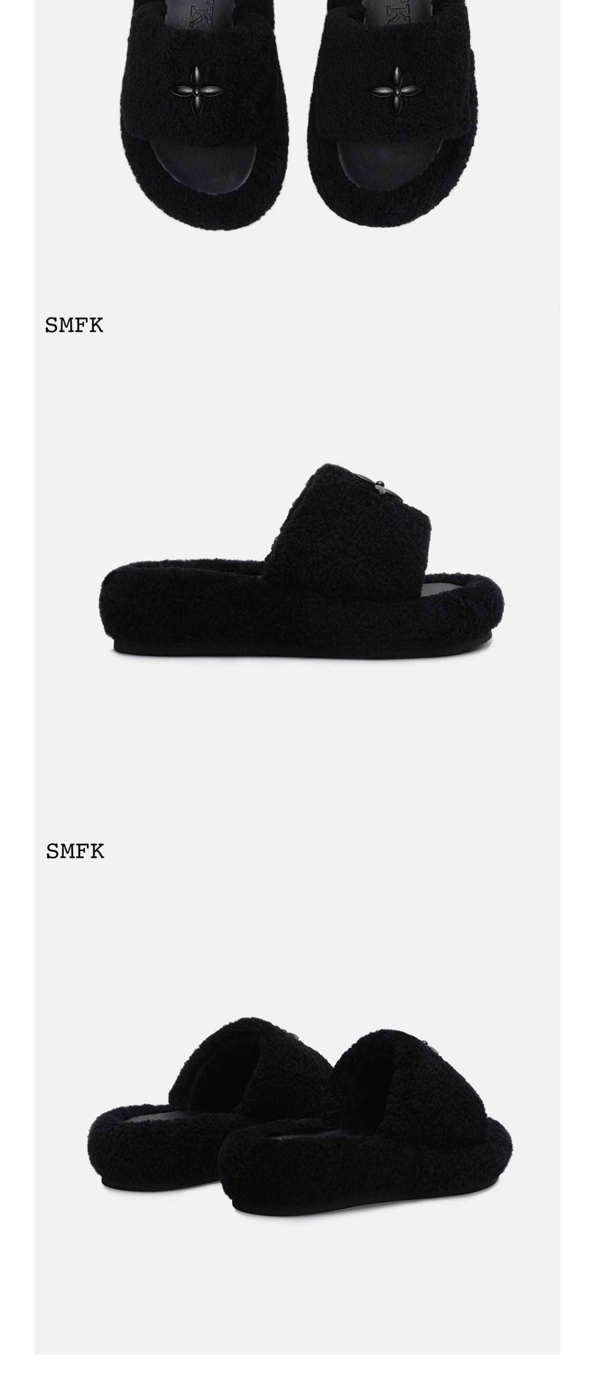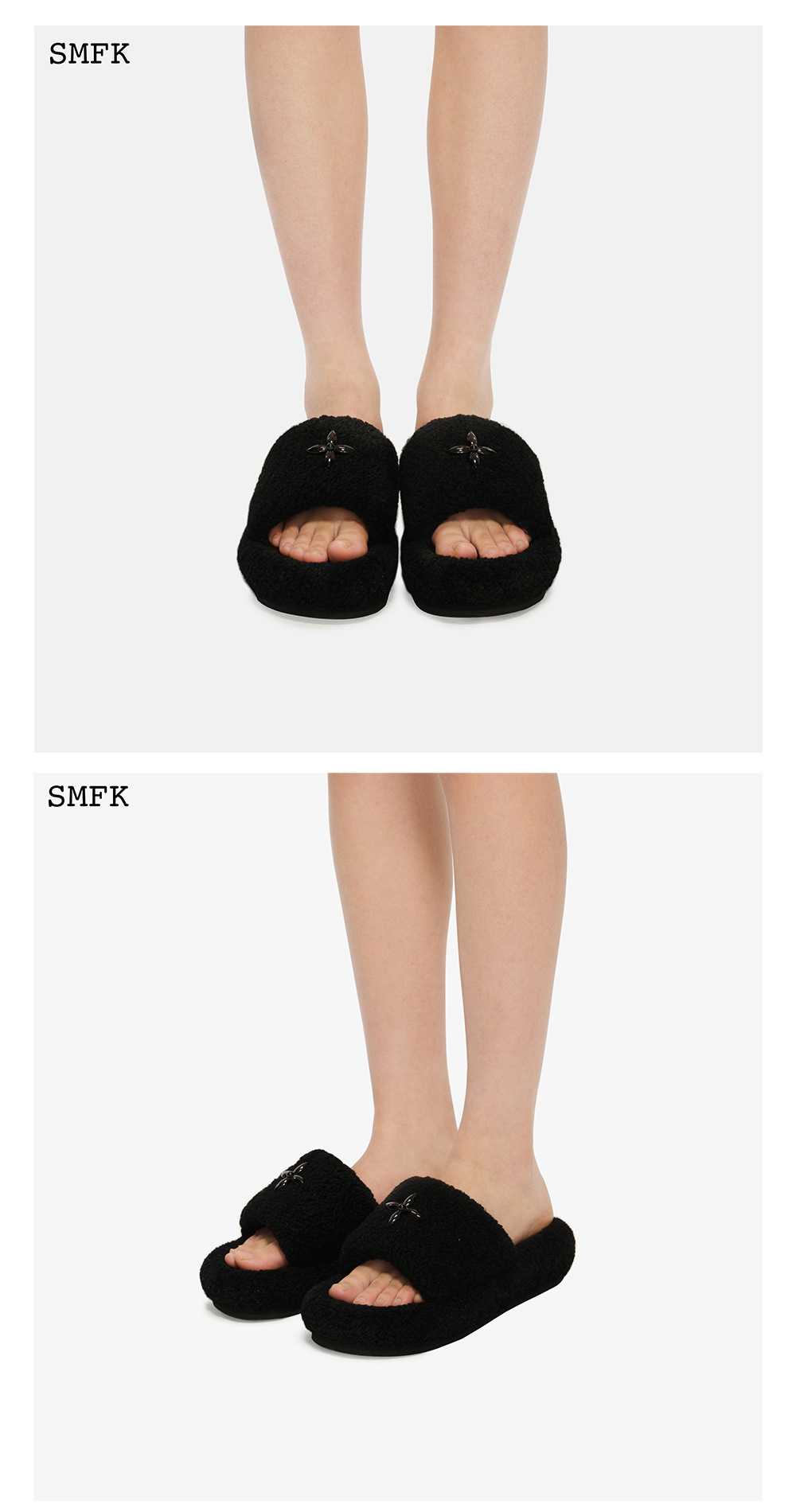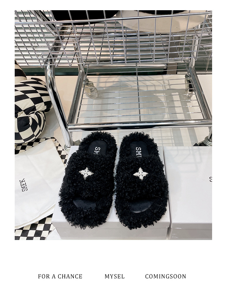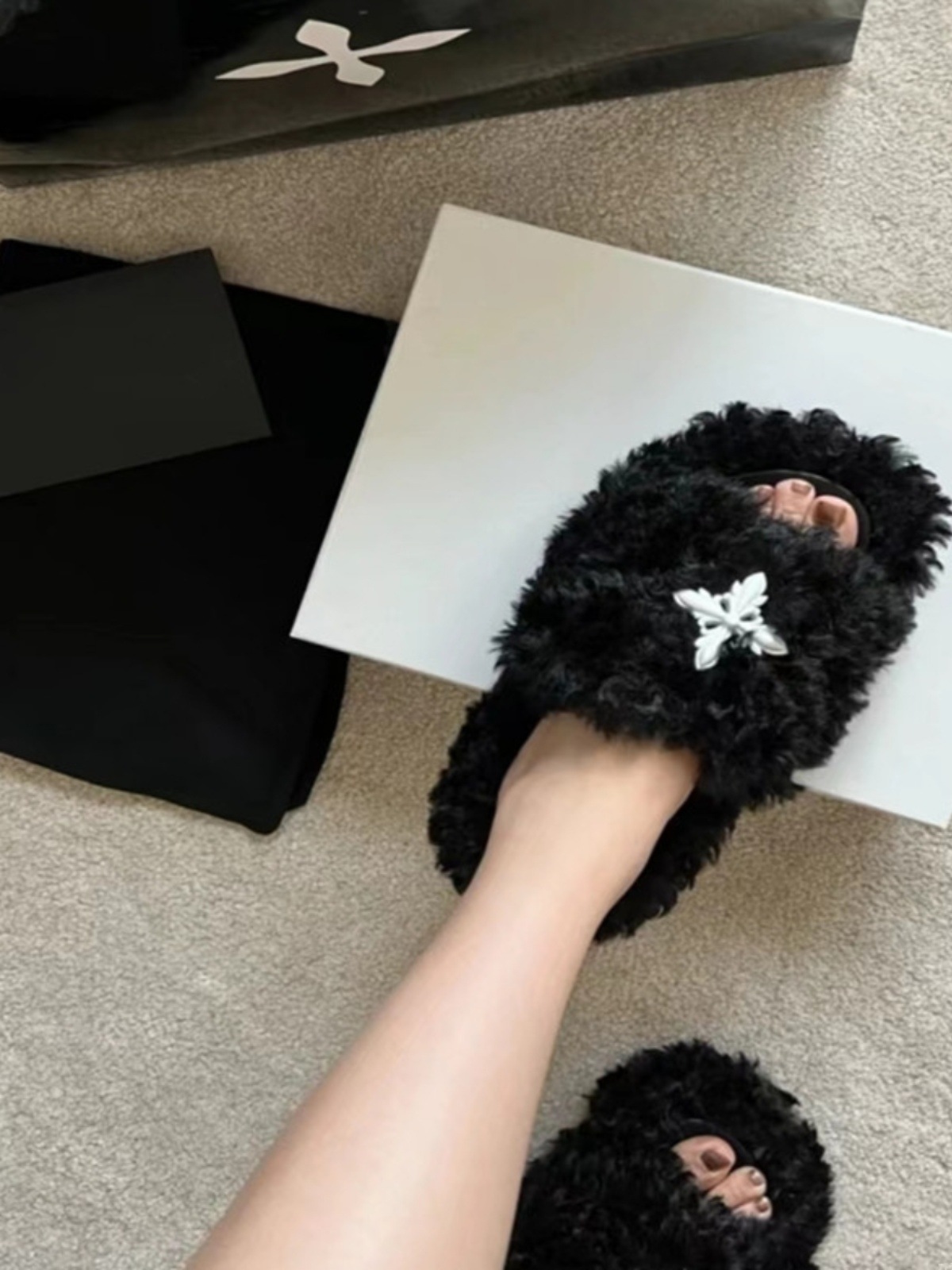 25年秋冬SMFK女性用黒毛皮スリッパ、ウー・シュアンイーと同じスタイルのアウターウェアウールベルベット、厚底