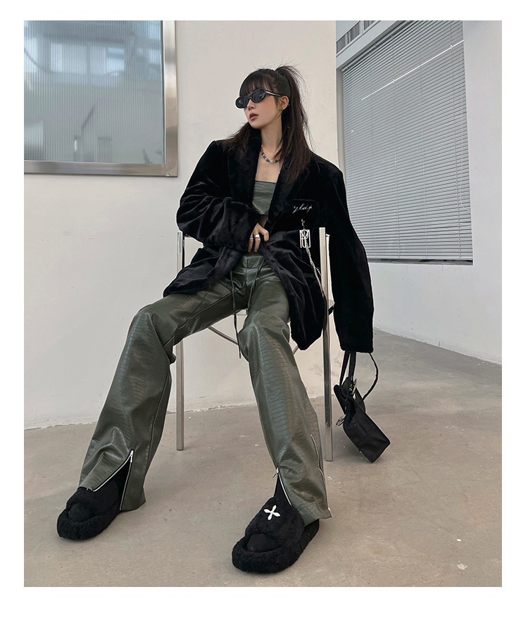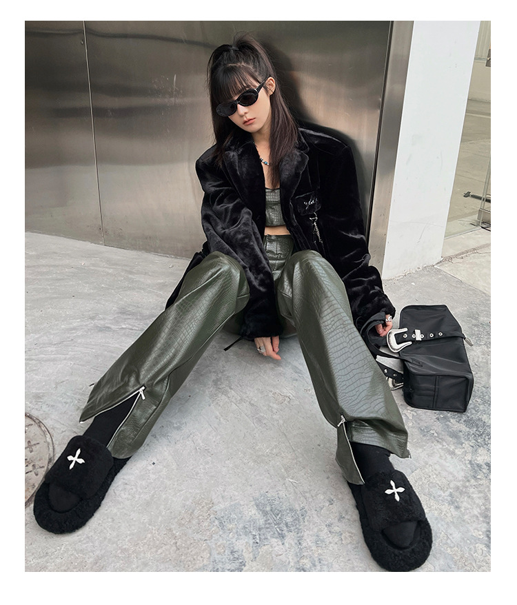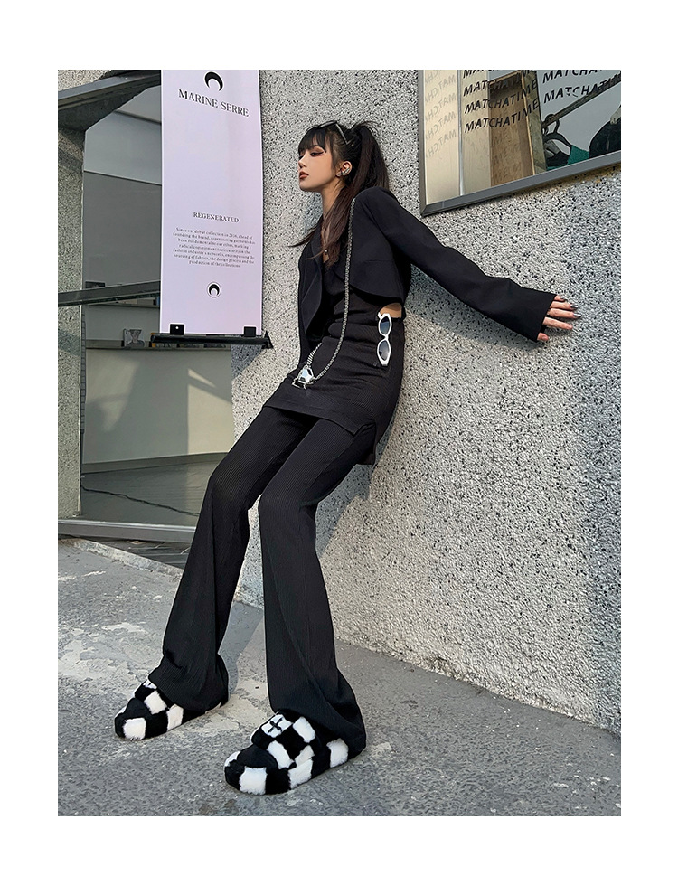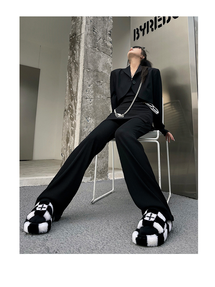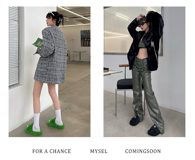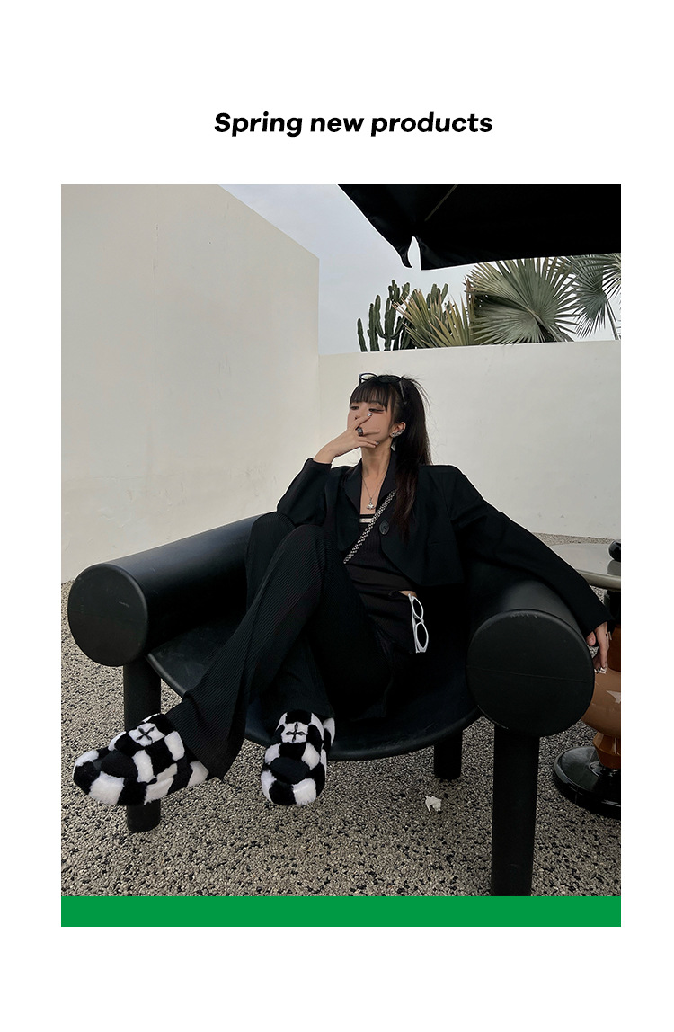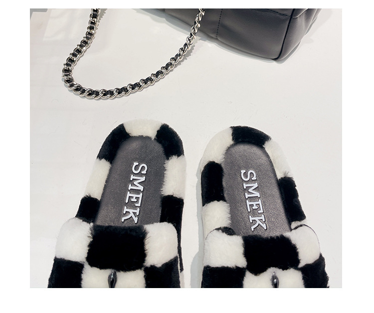 25年秋冬SMFK女性用黒毛皮スリッパ、ウー・シュアンイーと同じスタイルのアウターウェアウールベルベット、厚底