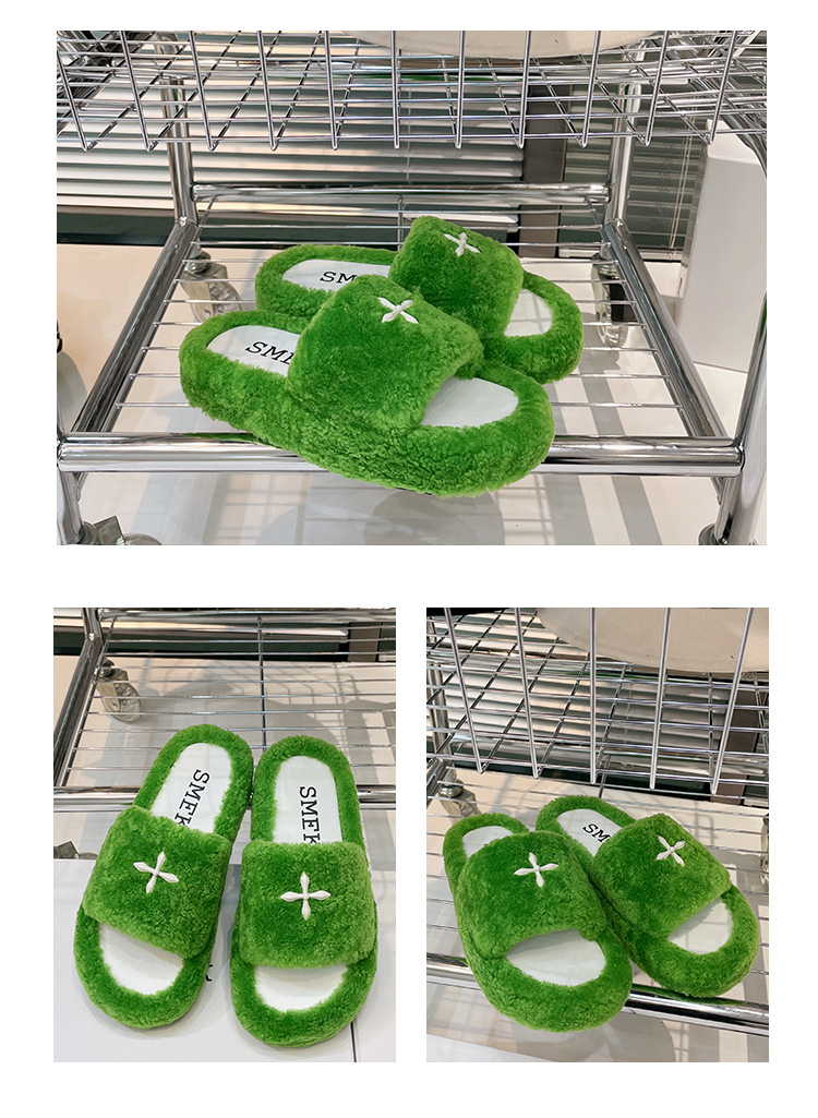 高品质!25秋冬新款SMFK十字花厚底毛毛拖鞋外穿增高休闲一字拖女