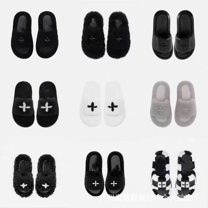 高バージョンのS-SMFK2025の白いベルベットの毛のスリッパの女性の靴の十字の花の毛の毛の外は厚い底を着ます。