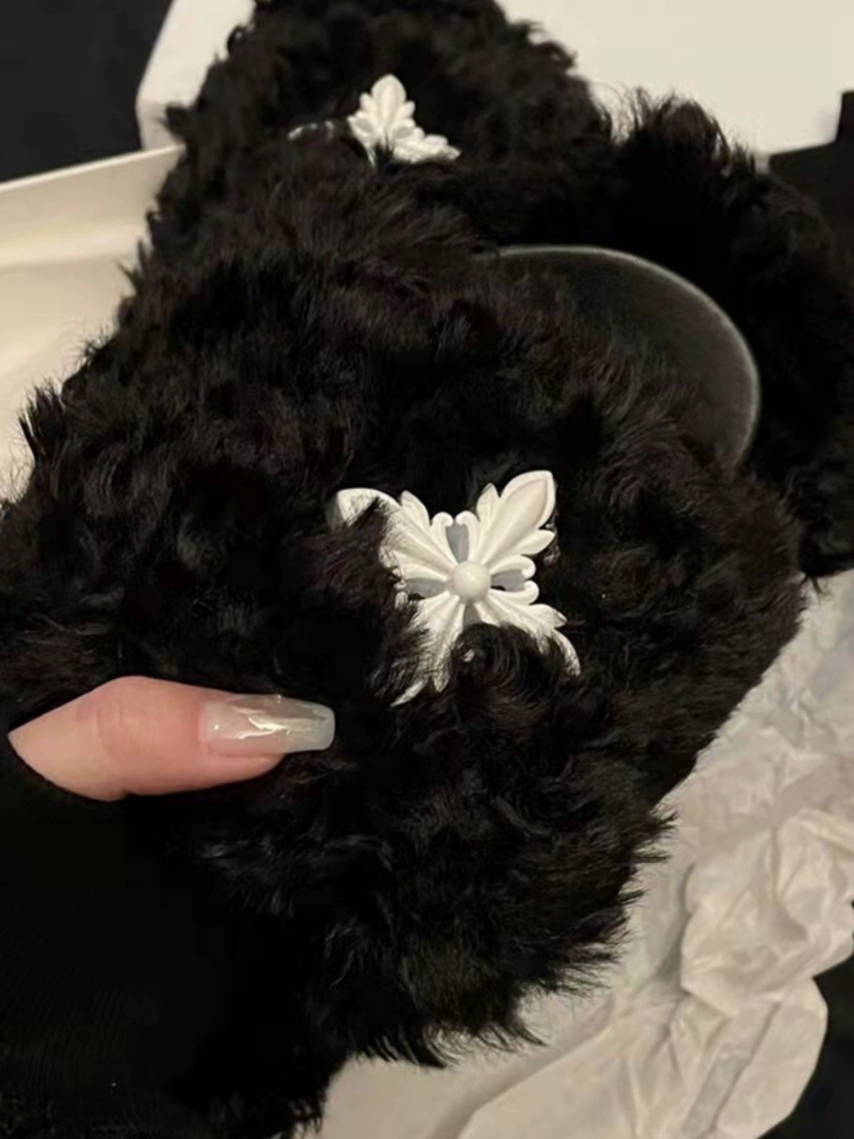 高品質! Wu Xuan Yi の同じスタイル SMFK クロスフラワーファースリッパブラックベルベット厚底アウターウェアスリッパ女性用