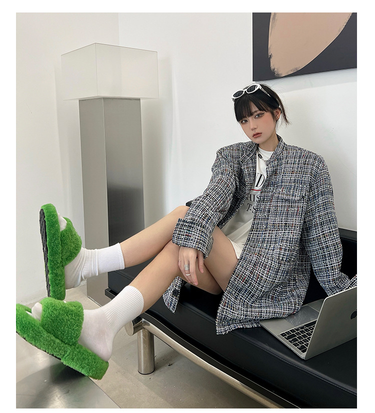 SMF-KK丝绒毛毛拖鞋女高版本2025新款十字架气球毛拖厚底外穿百搭
