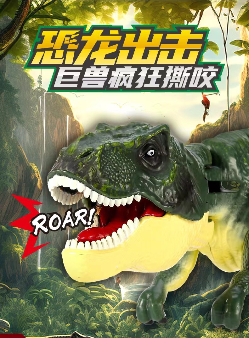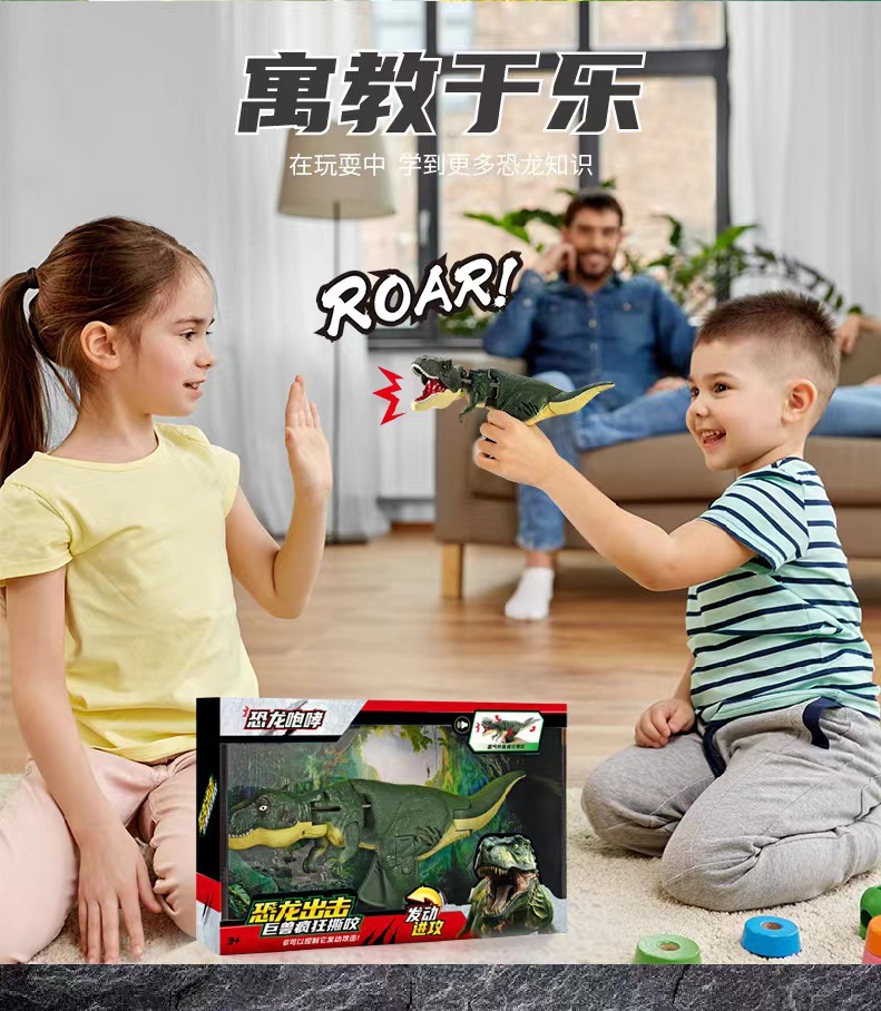 子供が揺れる照明の効果音を押します。恐竜のおもちゃはドラゴンをつつきます。