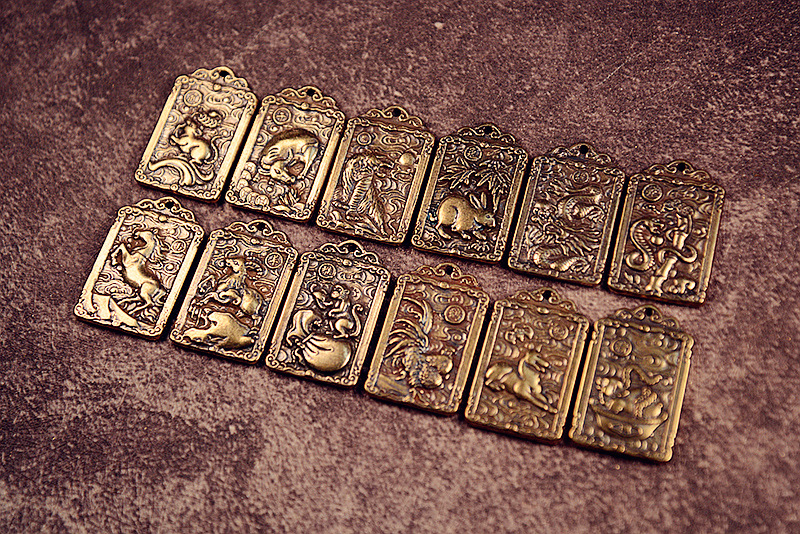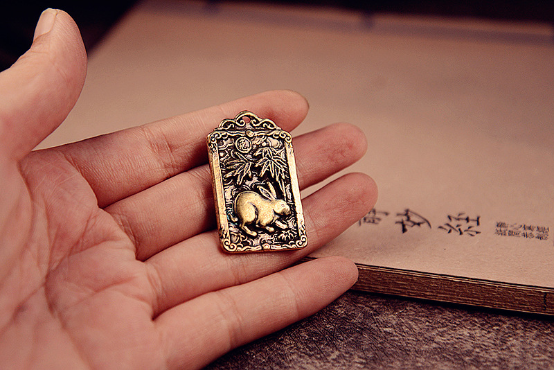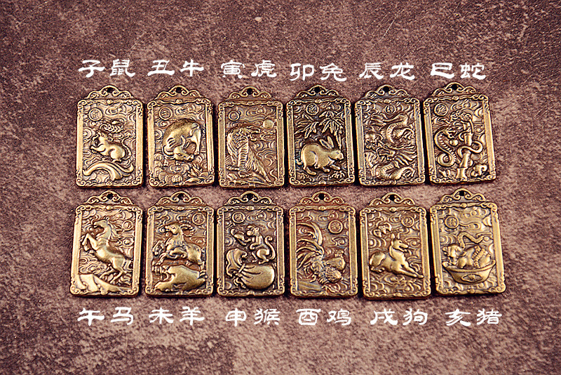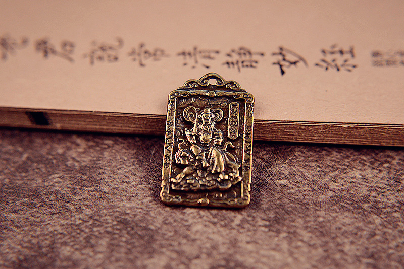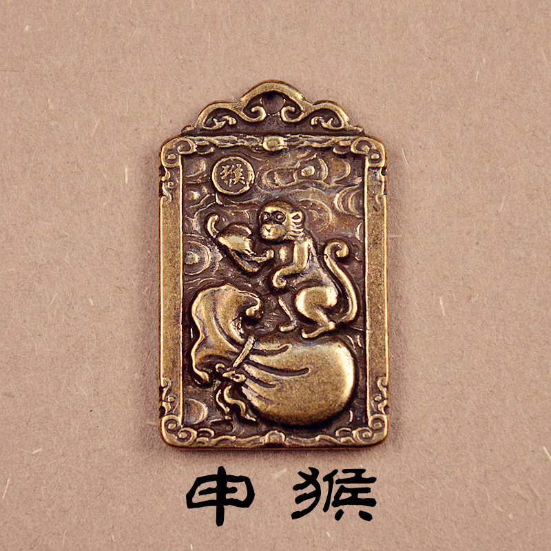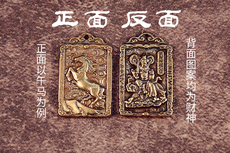 黄銅の財神趙公明方牌のキーは財神のトークンの十二生肖のペンダントの銅のキーはペンダントの骨董品を掛けます。