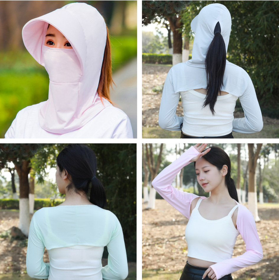 夏の屋外日焼け止め一体ストール氷糸袖カバー紫外線防止アーム肩保護タイプ大サイズ氷袖日焼け止め服