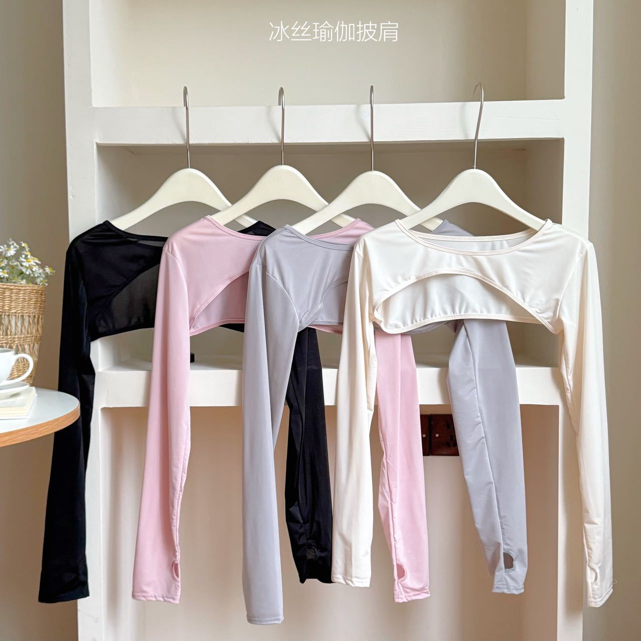夏の屋外日焼け止めショートアイスシルクラグランアイススリーブヨガスポーツ軽量通気性クールオールインワン弾性ショール