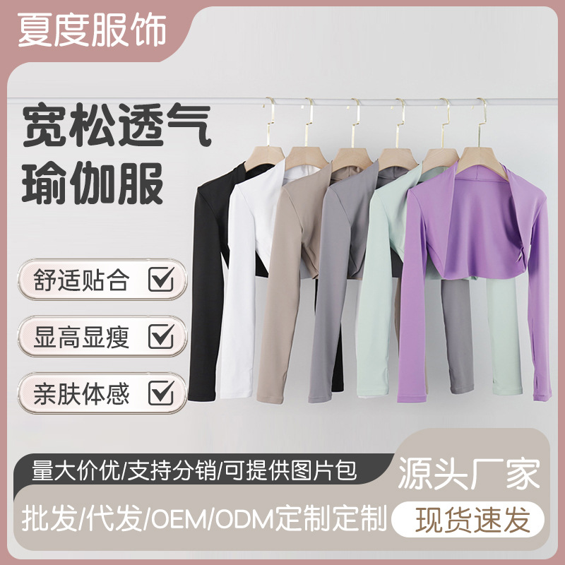夏の新型ヨガの肩の上着の長袖のカーディガンの日焼け止めの小さいコートのガードルの外は短いスポーツのストールの女性に乗ります。
