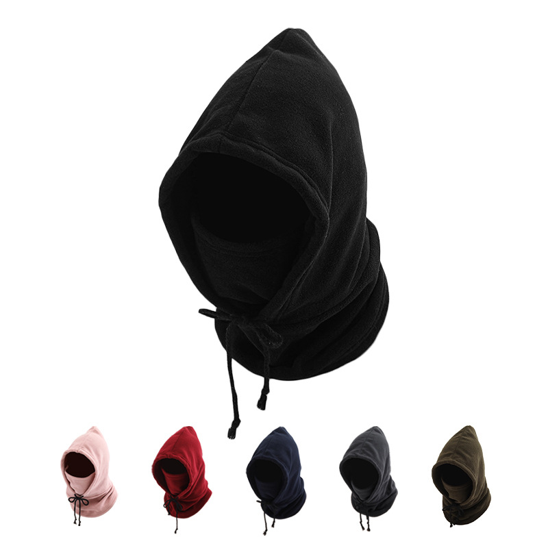 秋と冬の調節可能なポーラーフリースプルオーバー帽子屋外防風防寒暖かい帽子スカーフとネックプロテクター一体型プルオーバー帽子