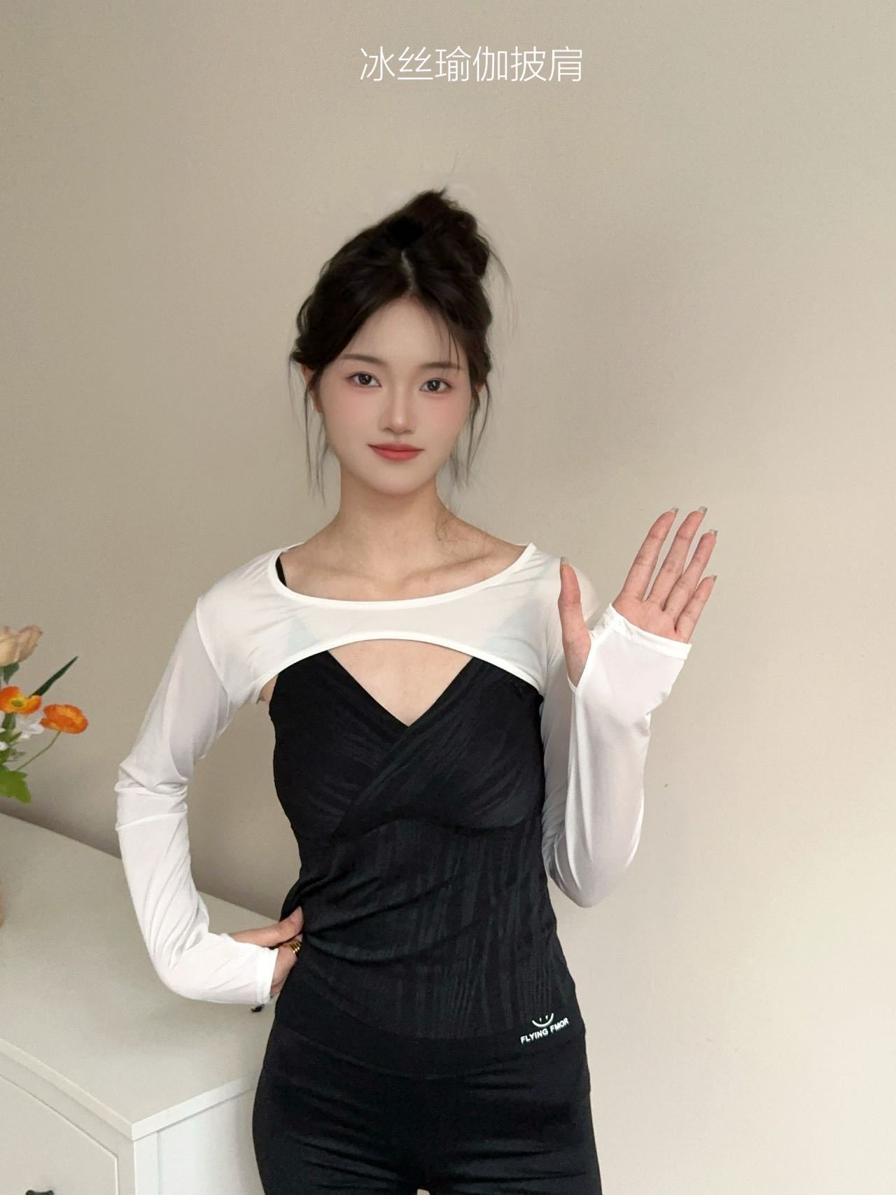 芭蕾舞蹈体操长袖坎肩罩衫瑜伽服健身T恤运动训练办公室护脖披肩