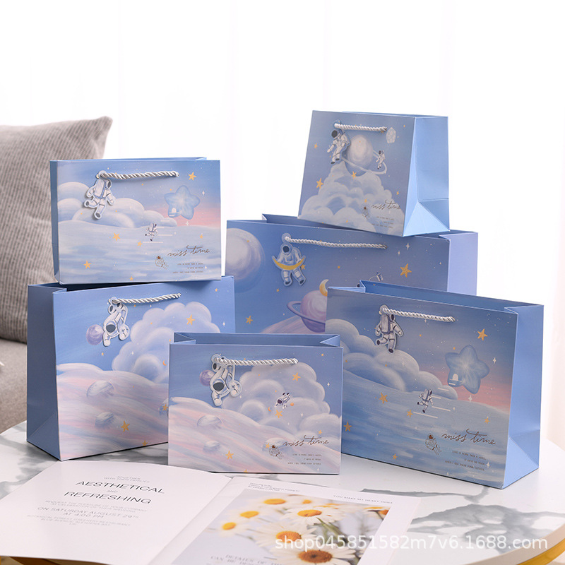 横版宇宙飛行士ギフトバッグ素敵な誕生日プレゼント包装袋白カード手提げ袋現物紙袋お土産袋