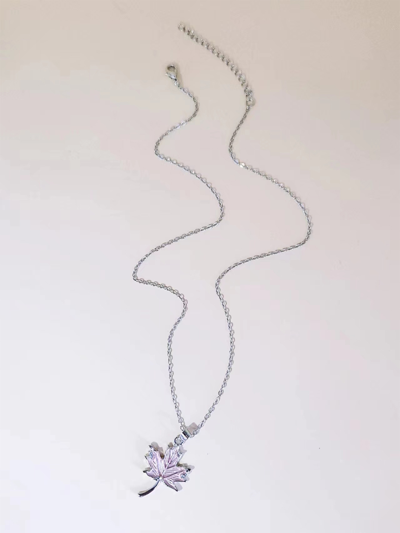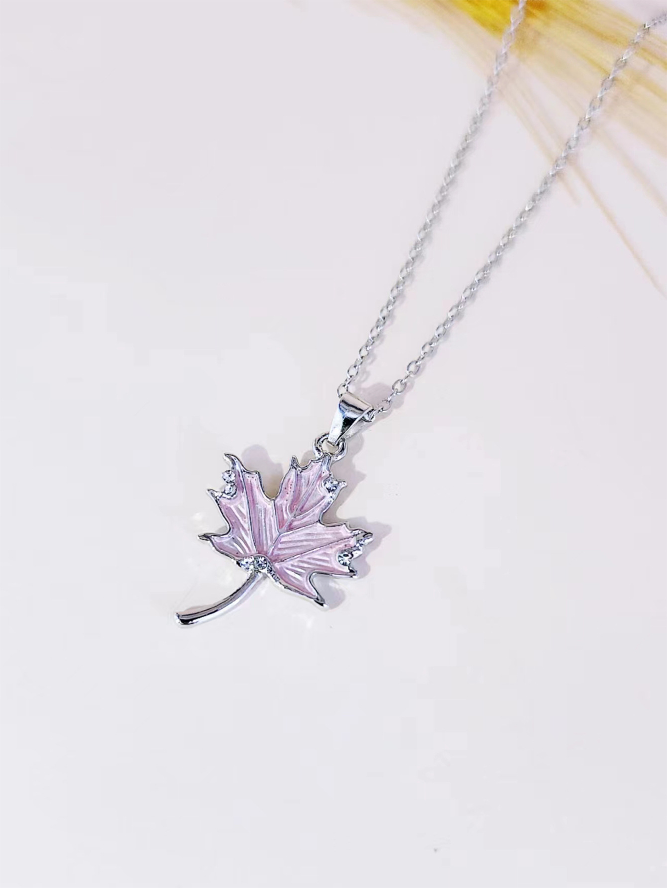 欧美时尚 简约彩色枫叶 吊坠个性设计锁骨链轻奢小众跨境饰品批发