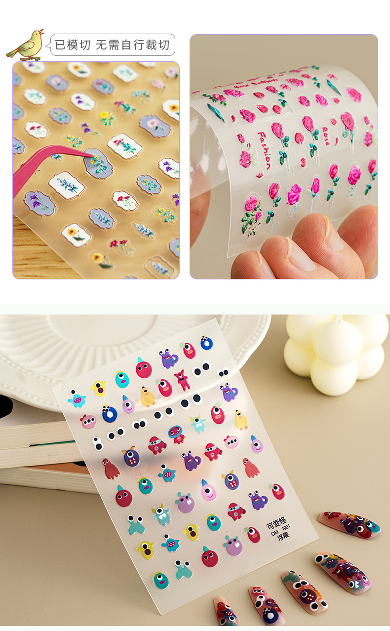 ネットレッドネイルシール高颜値女かわいいベアーdiy落書きレリーフ5d立体シール3dネイルステッカー