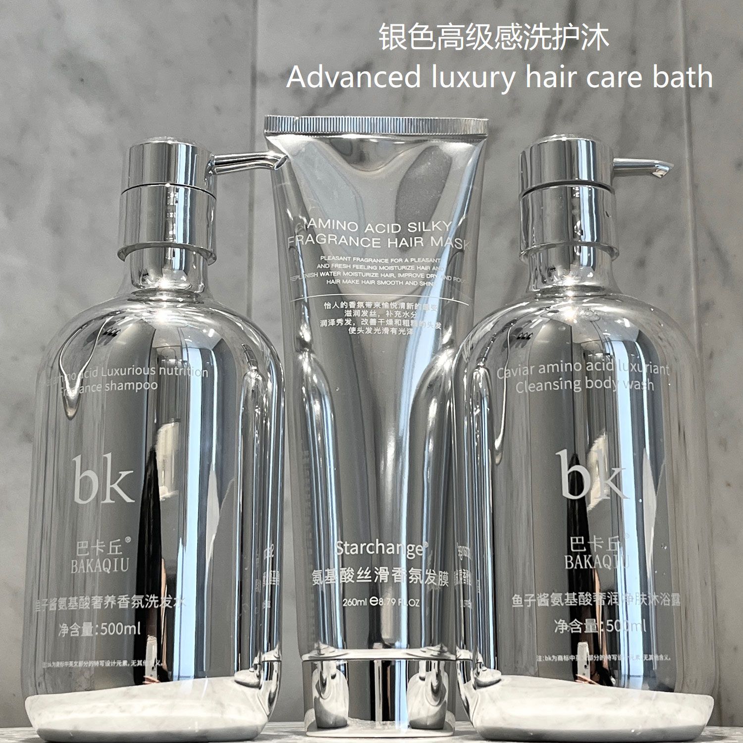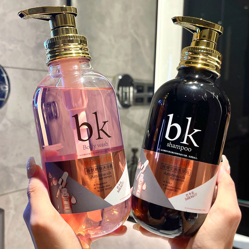 BK英文银色高级洗发水控油蓬松清爽留香沐浴露护发素套装酒店专用