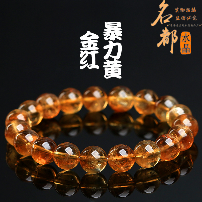 名都水晶 天然7A级金红暴力黄水晶手链 老矿深黄水晶圆珠手串批发