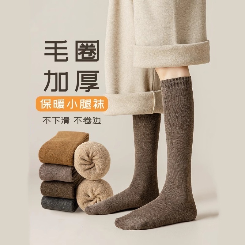 羊绒小腿袜男女秋冬季长筒加绒加厚款保暖长袜女士羊毛长筒袜睡眠