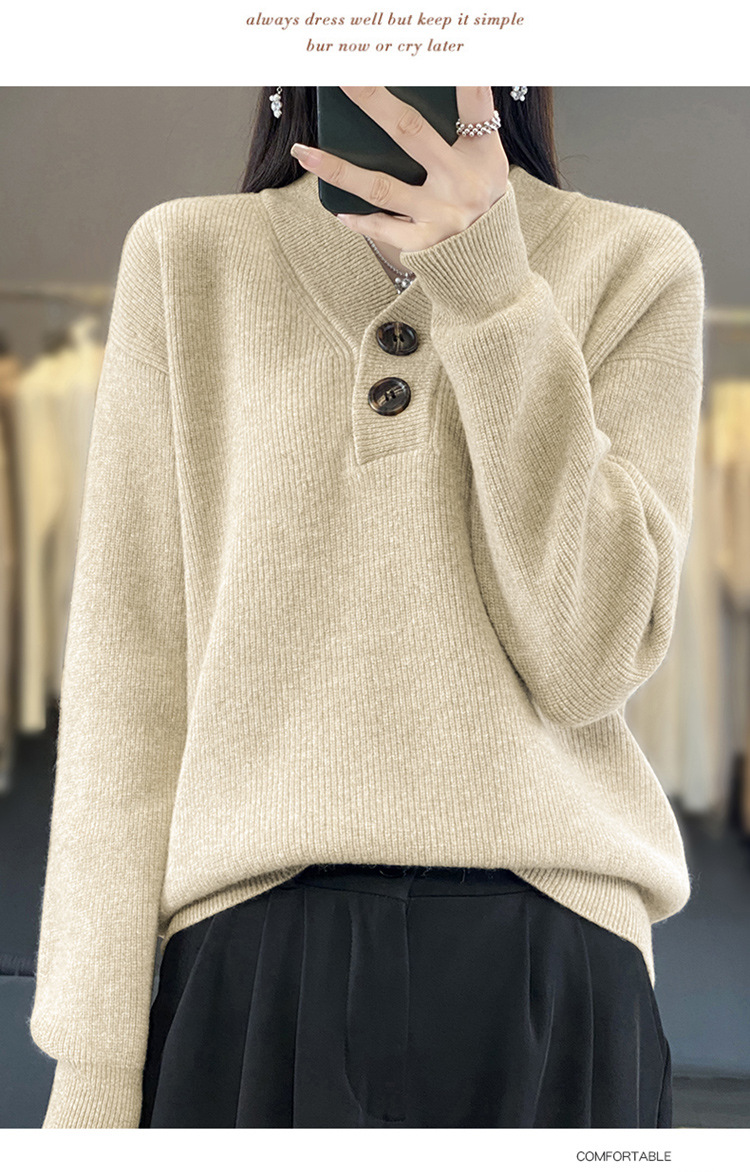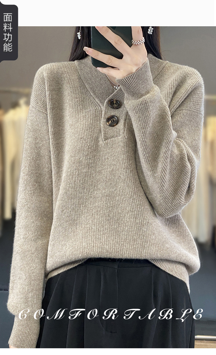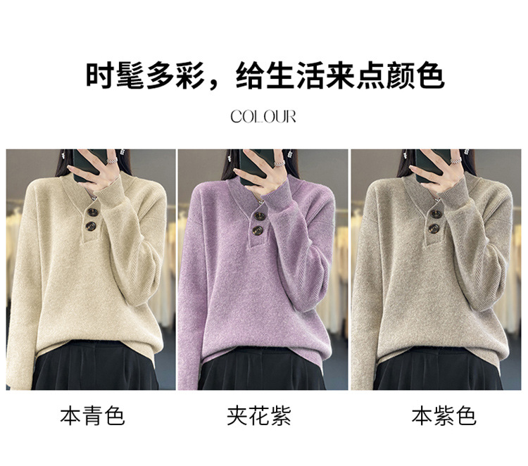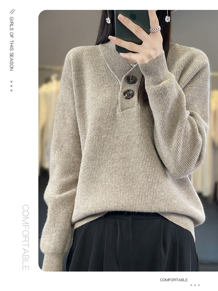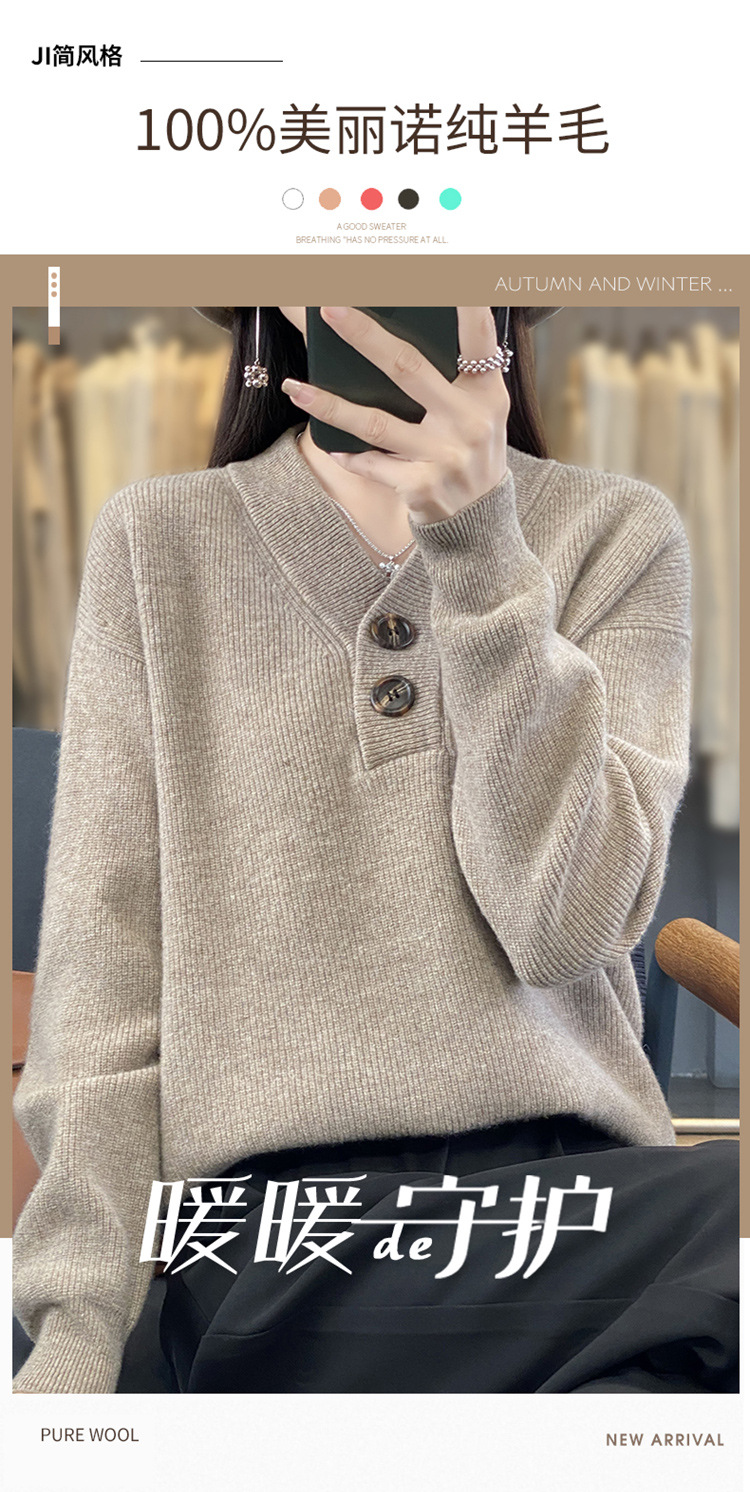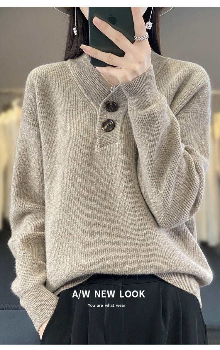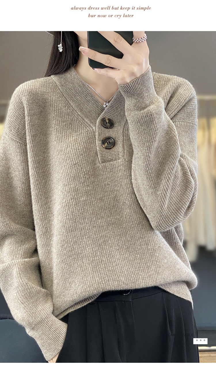 Vネックの厚い元宝の針のウールのセーターの女性のウールの怠惰な風の頭のファッションのデザイン感のニットのセーターの2023