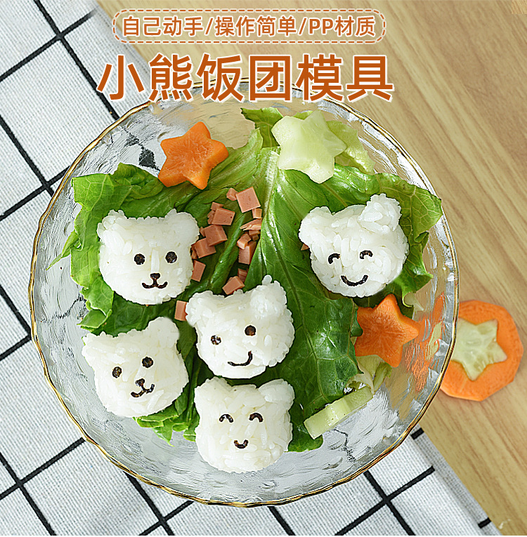 アニメミニ熊おにぎり金型子供ご飯創意造形寿司海苔表情エンボス弁当道具