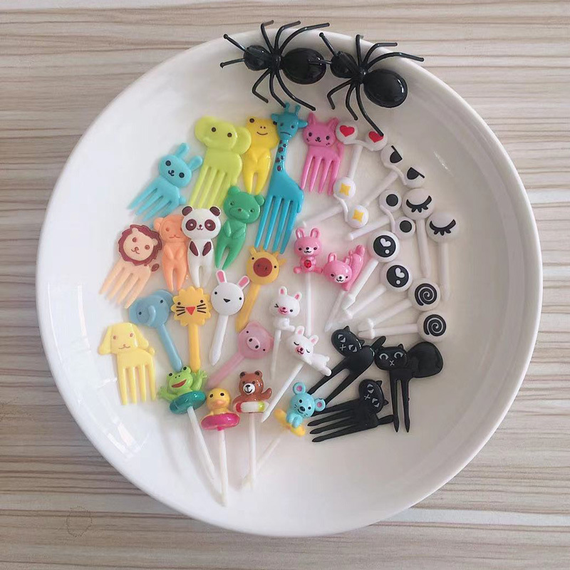 メーカーの卸売り子供の果物とフォークの日本式の弁当は家庭用の甘いものに署名して動物の金に果物の小さいフォークを挿します。