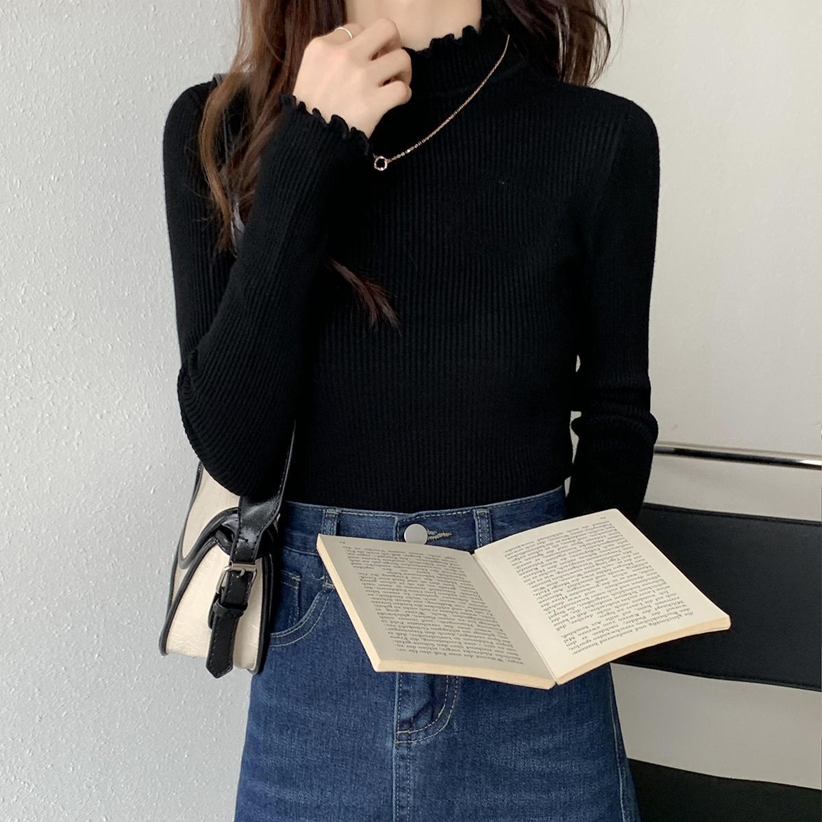 半高襟セーター女性秋冬韓系ゆるいシャツの中に黒いニットの長袖上着を厚く着ている
