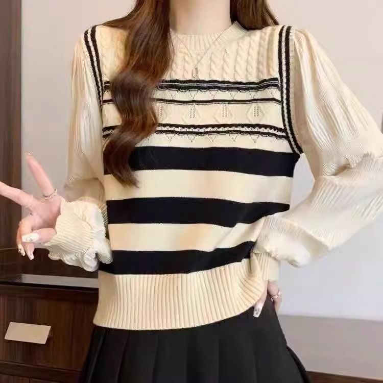 春の韓系はニットの女性の春秋2025の新型のセーターの高級感のストライプの中で底の上着を掛けます。